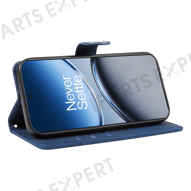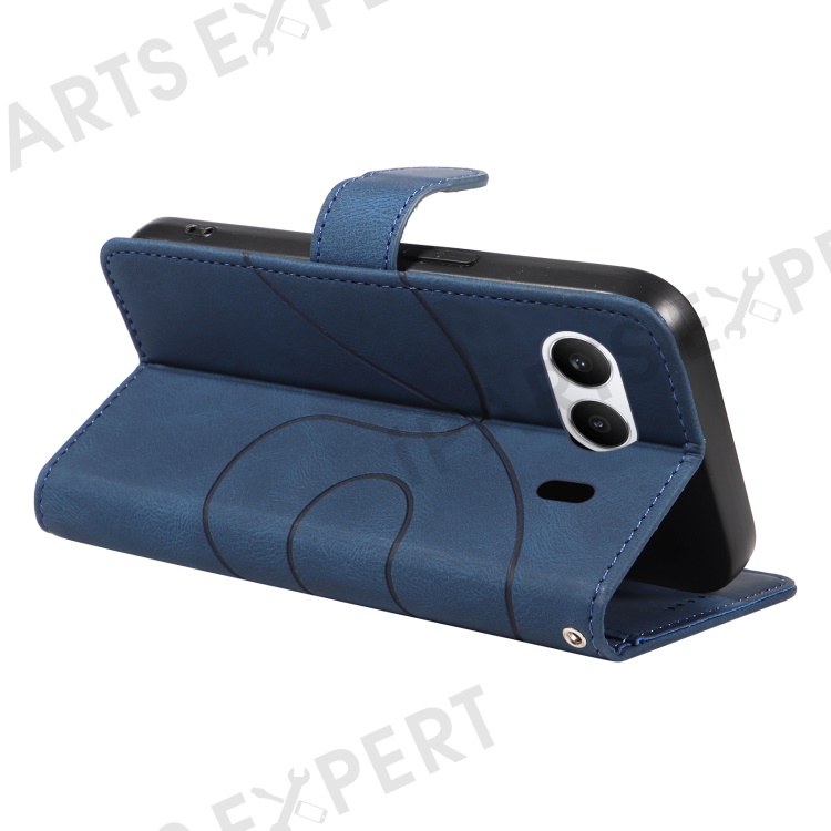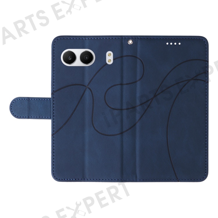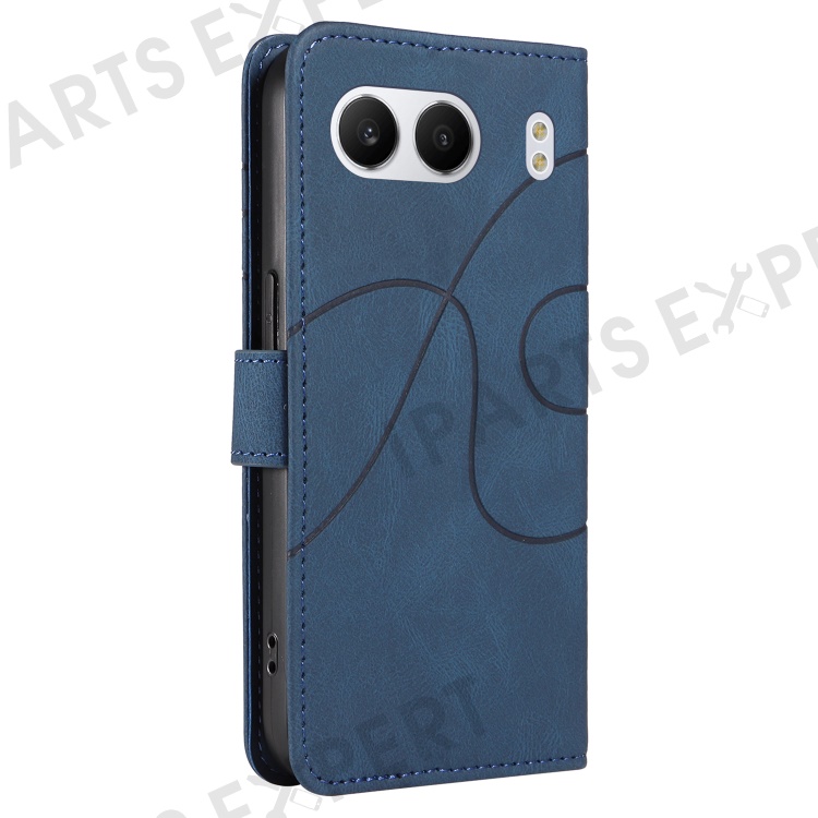For OnePlus Nord 4 Case Stand Wallet Leather Phone Cover Curved Line Wrist Strap - Blue