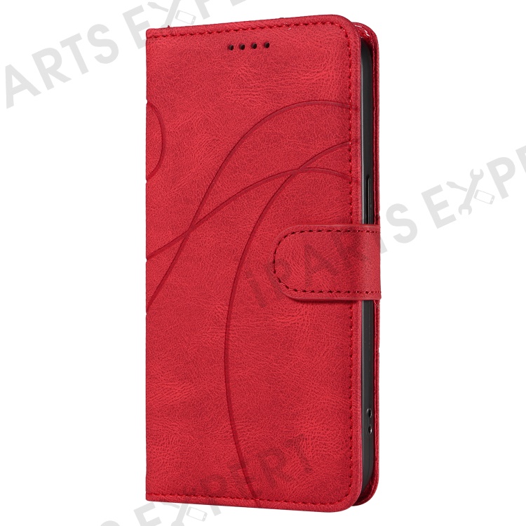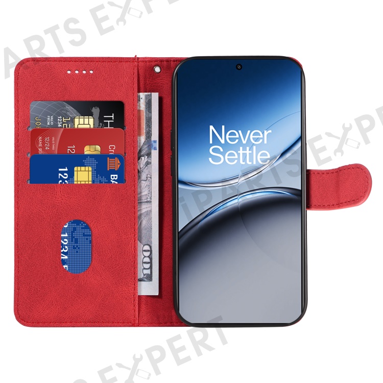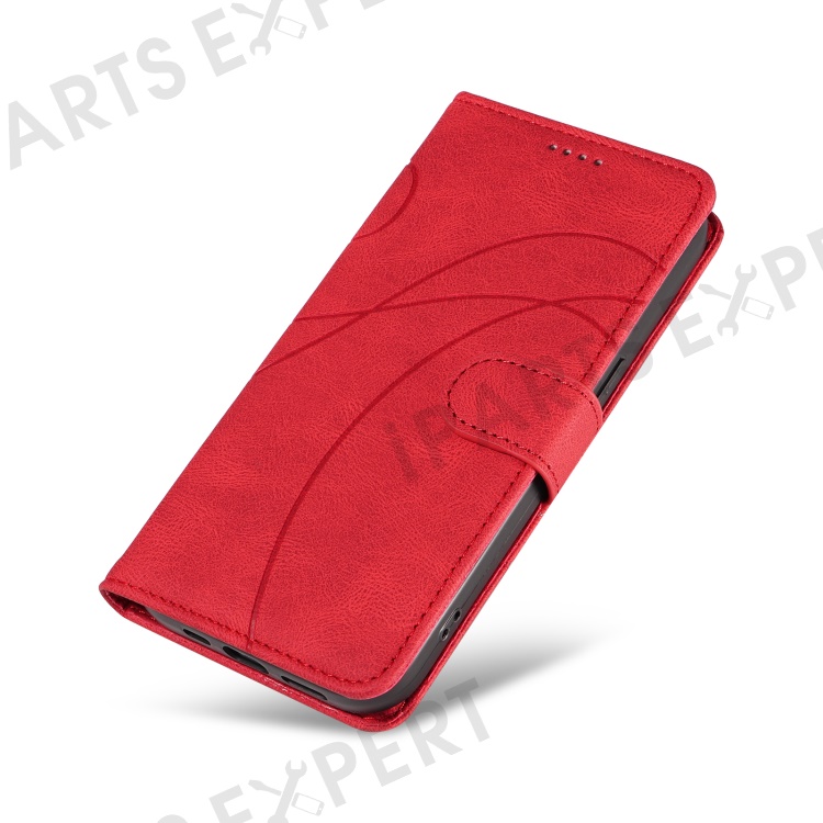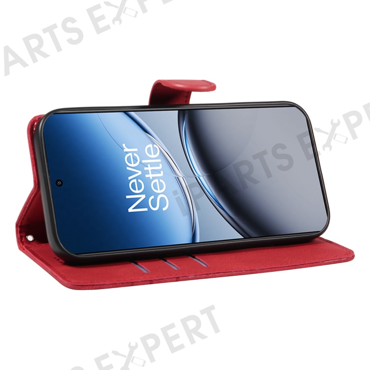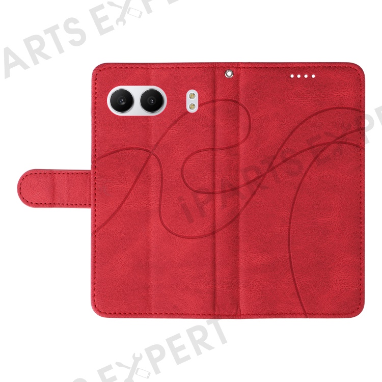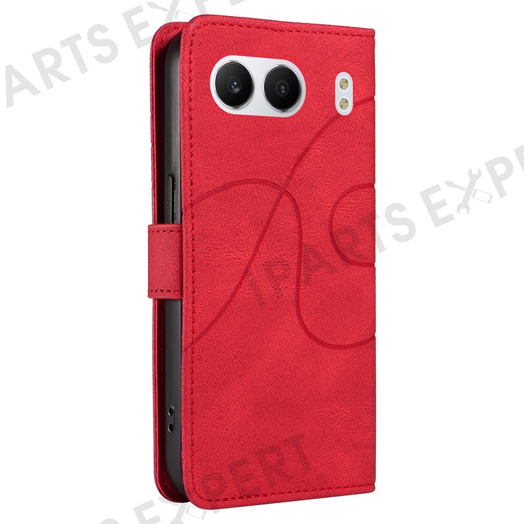 For OnePlus Nord 4 Case Stand Wallet Leather Phone Cover Curved Line Wrist Strap - Red