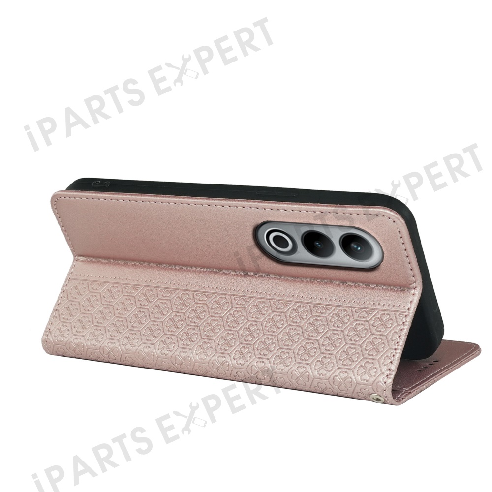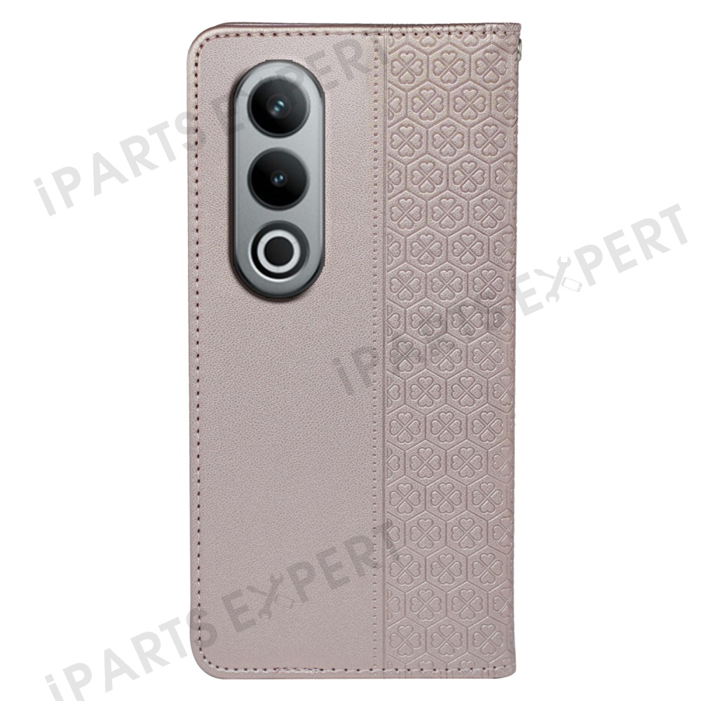 For OnePlus Nord CE4 5G Case Four Leaf Clover Leather Flip Phone Cover Stand Wallet - Rose Gold