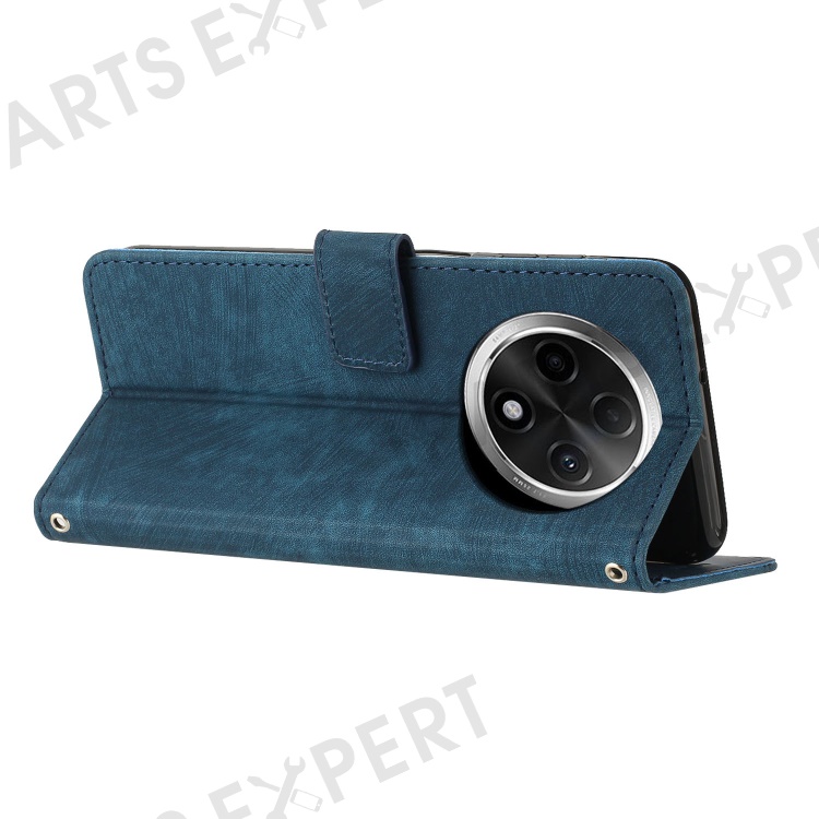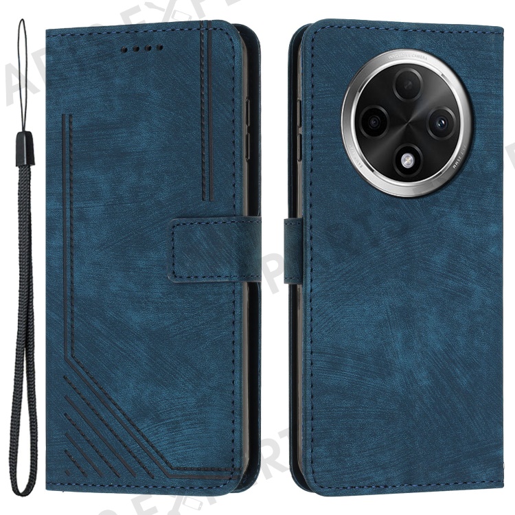 For Oppo A2 Pro 5G / A3 Pro (China) 5G Case Lines Imprinted Shockproof PU Leather Wallet Phone Cover - Sapphire