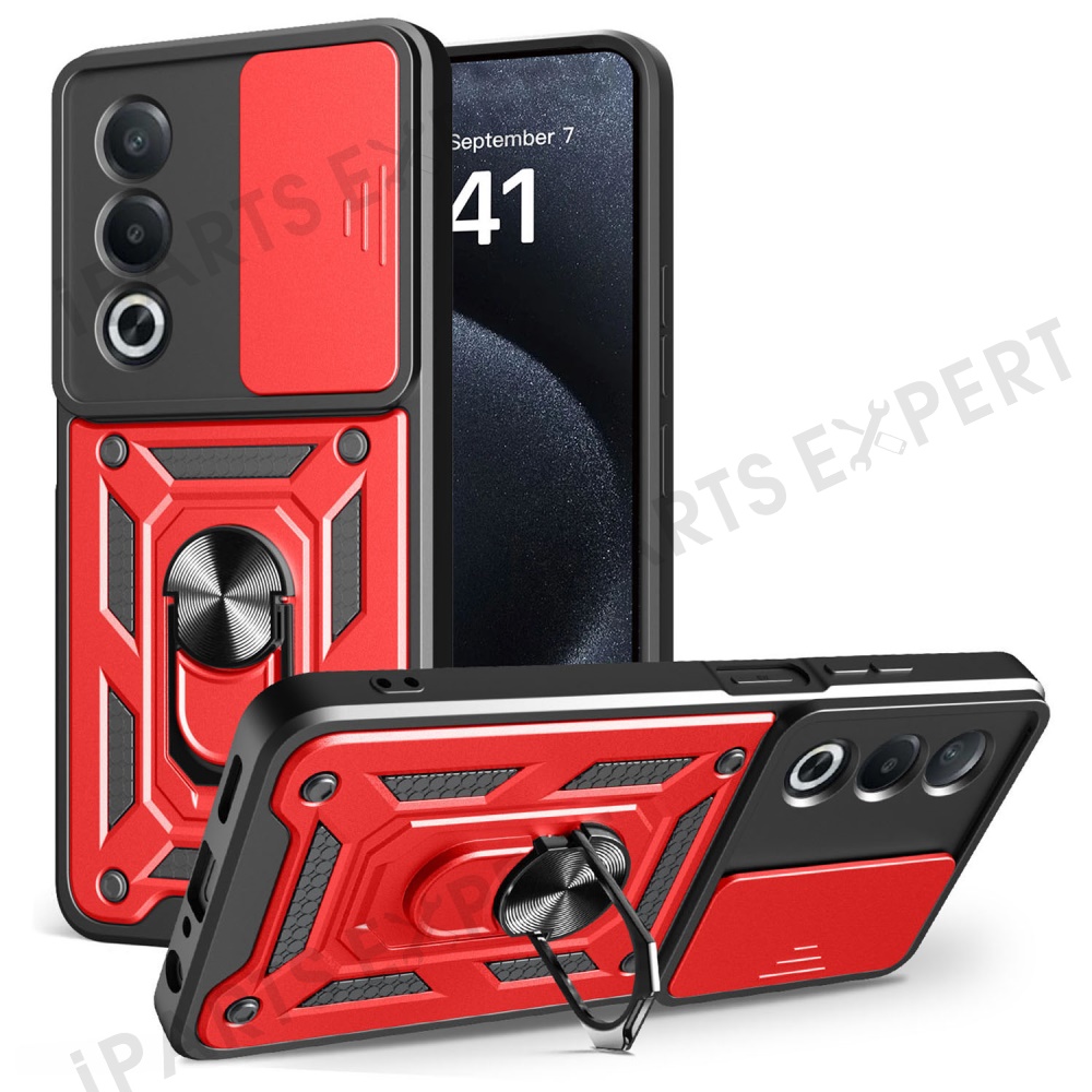 For Oppo A3 Pro (India) 5G / A80 5G Case with Slide Camera Lid PC + TPU Kickstand Phone Cover - Red