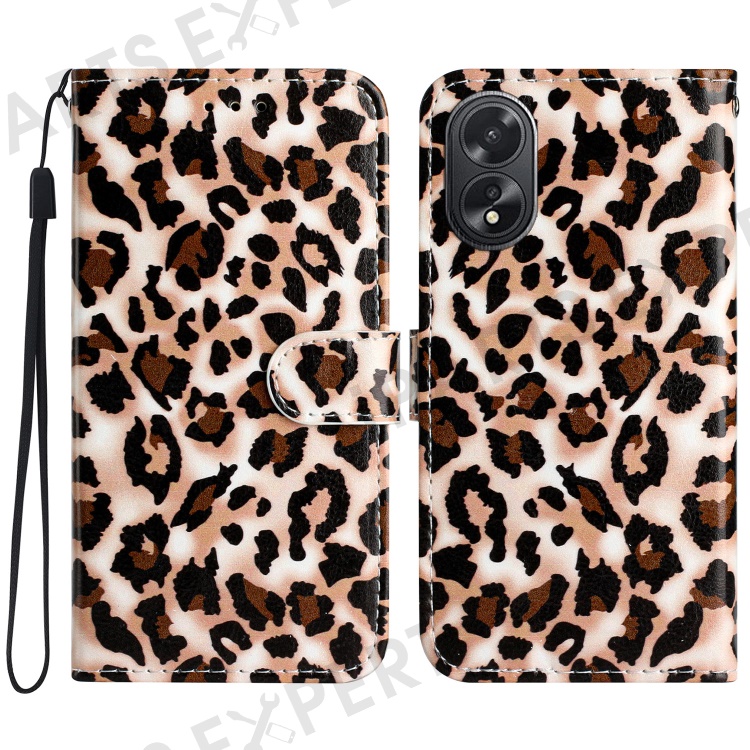 For Oppo A38 4G / A18 4G Case Pattern Printed Folio PU Leather Phone Cover - Leopard Print