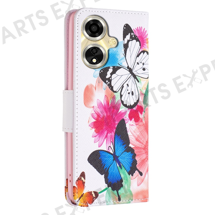 For Oppo A59 5G Leather Case Pattern Printed Wallet Phone Cover - Two Butterflies