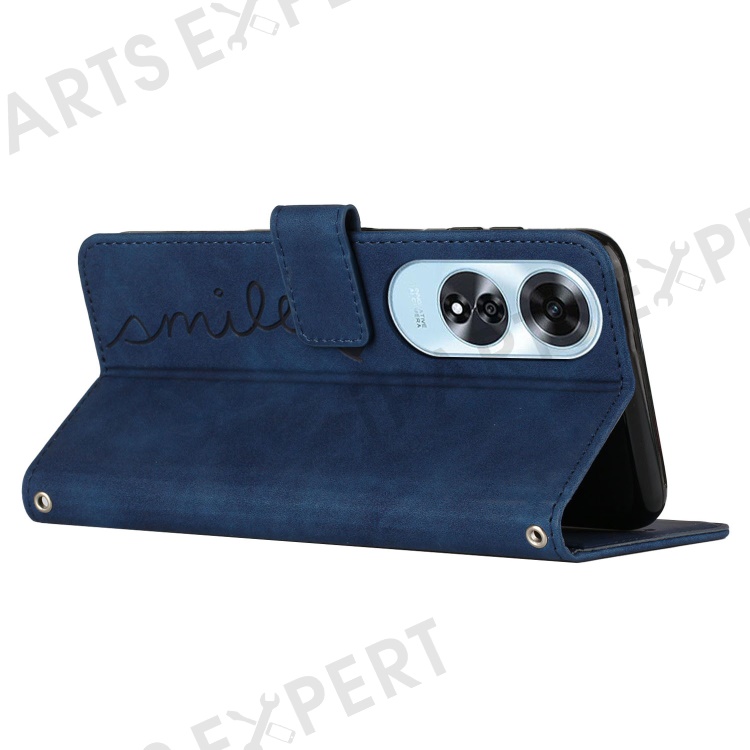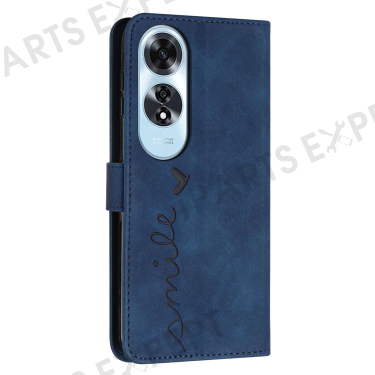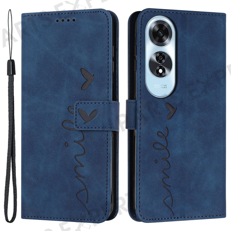 For Oppo A60 4G Case Heart Imprinted PU Leather Wallet Phone Cover with Strap - Sapphire
