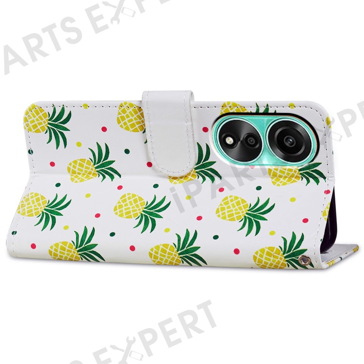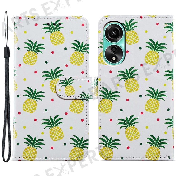 For Oppo A78 4G Case Wallet Leather Pattern Stand Phone Cover - Pineapple