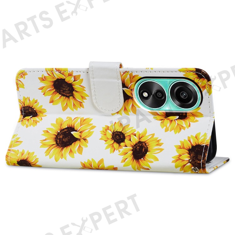 For Oppo A78 4G Case Wallet Leather Pattern Stand Phone Cover - Sunflower