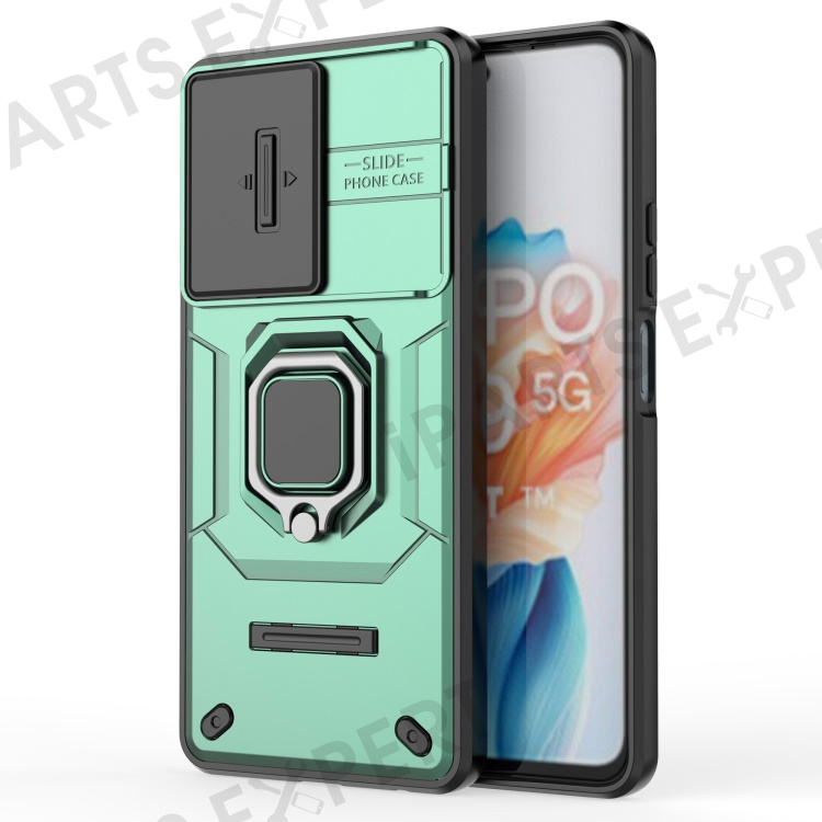 For Oppo A79 5G / A2 5G Case Camera Protection PC+TPU Phone Cover with Ring Kickstand - Green