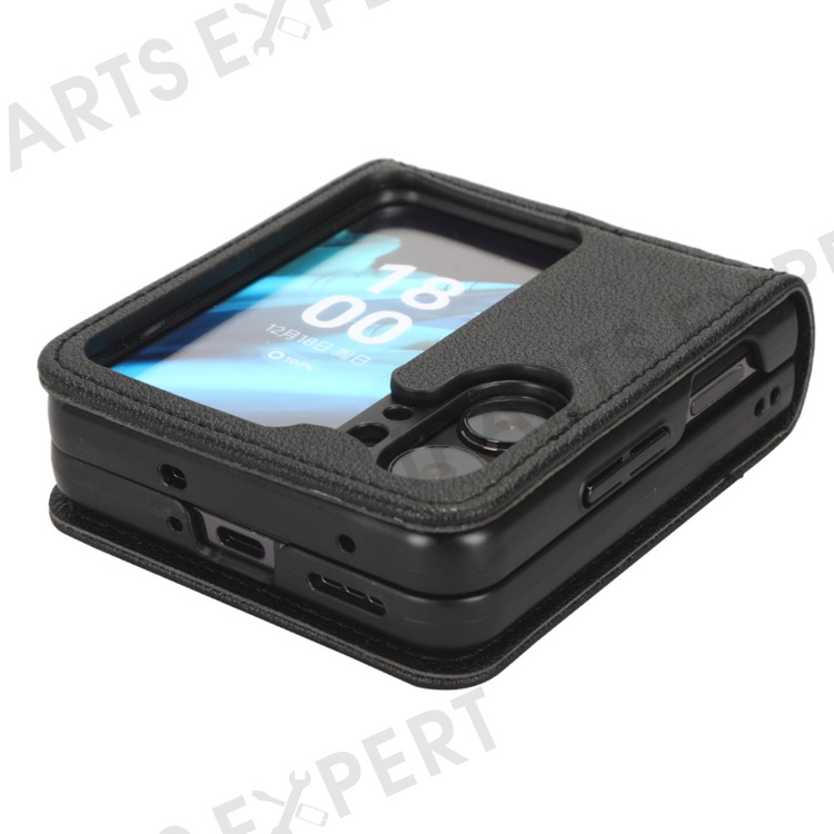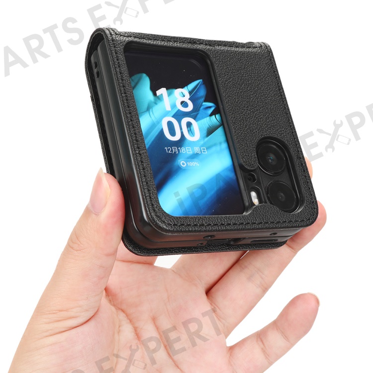 For Oppo Find N2 Flip 5G Phone Case Anti-Drop PU Leather PC Protective Wallet Cover - Black