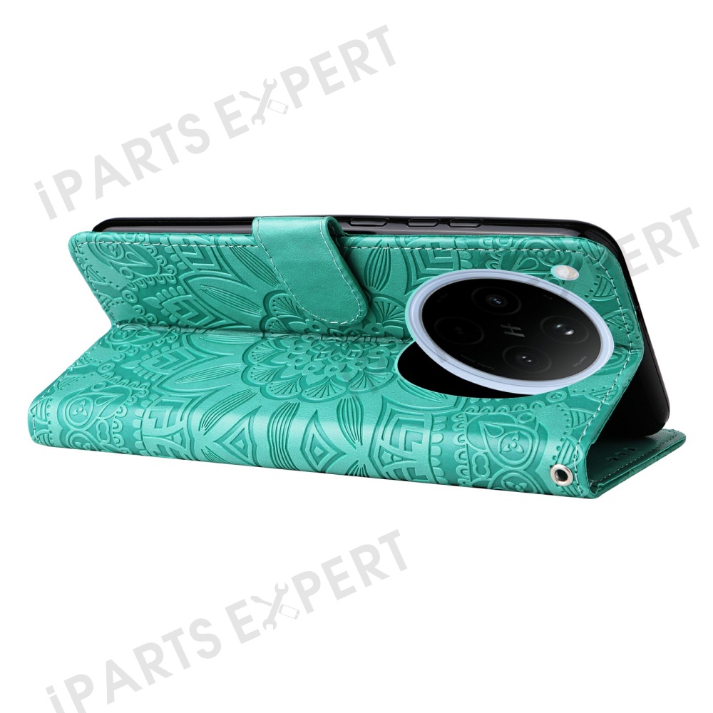 For Oppo Find X8 5G Case Sunflower Imprint Leather Wallet Phone Cover - Green