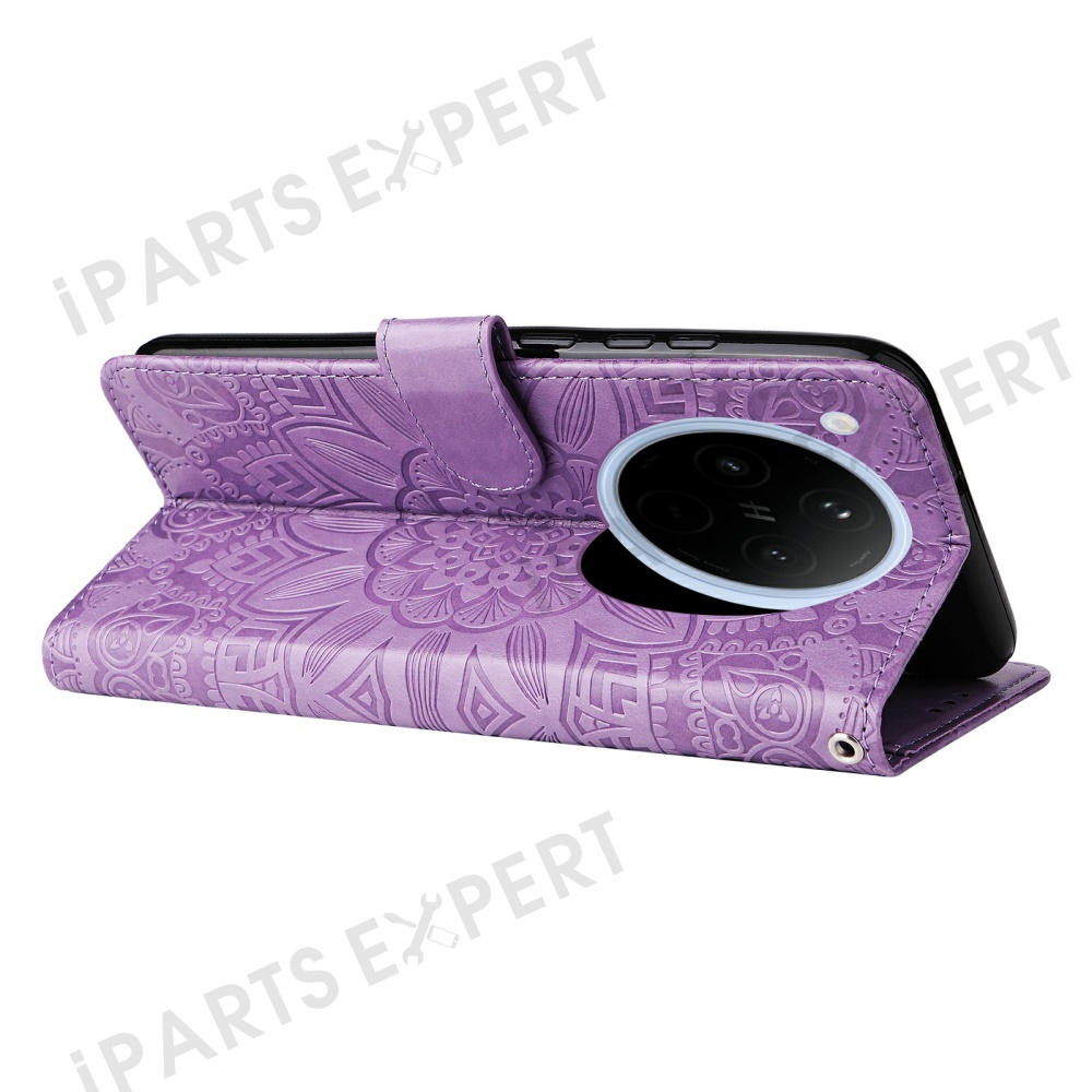 For Oppo Find X8 5G Case Sunflower Imprint Leather Wallet Phone Cover - Purple