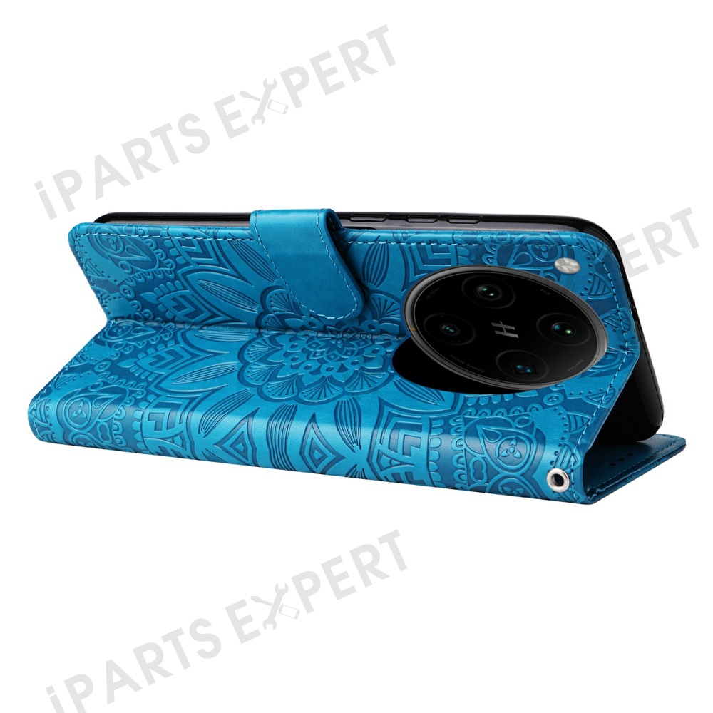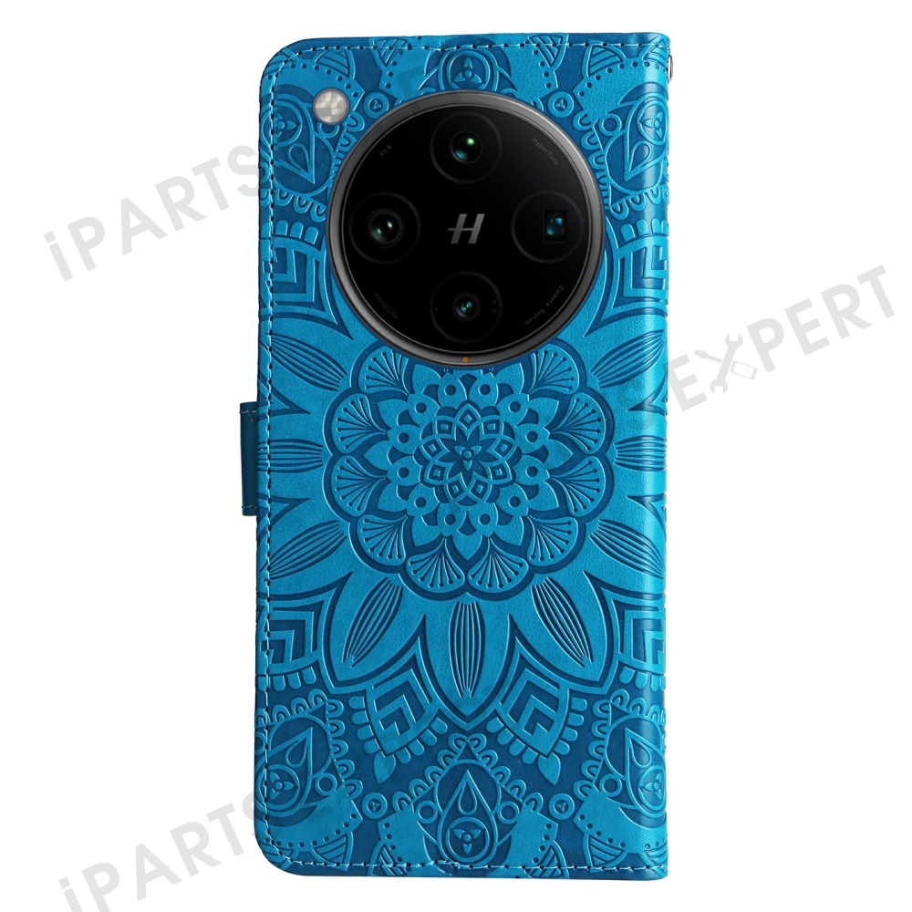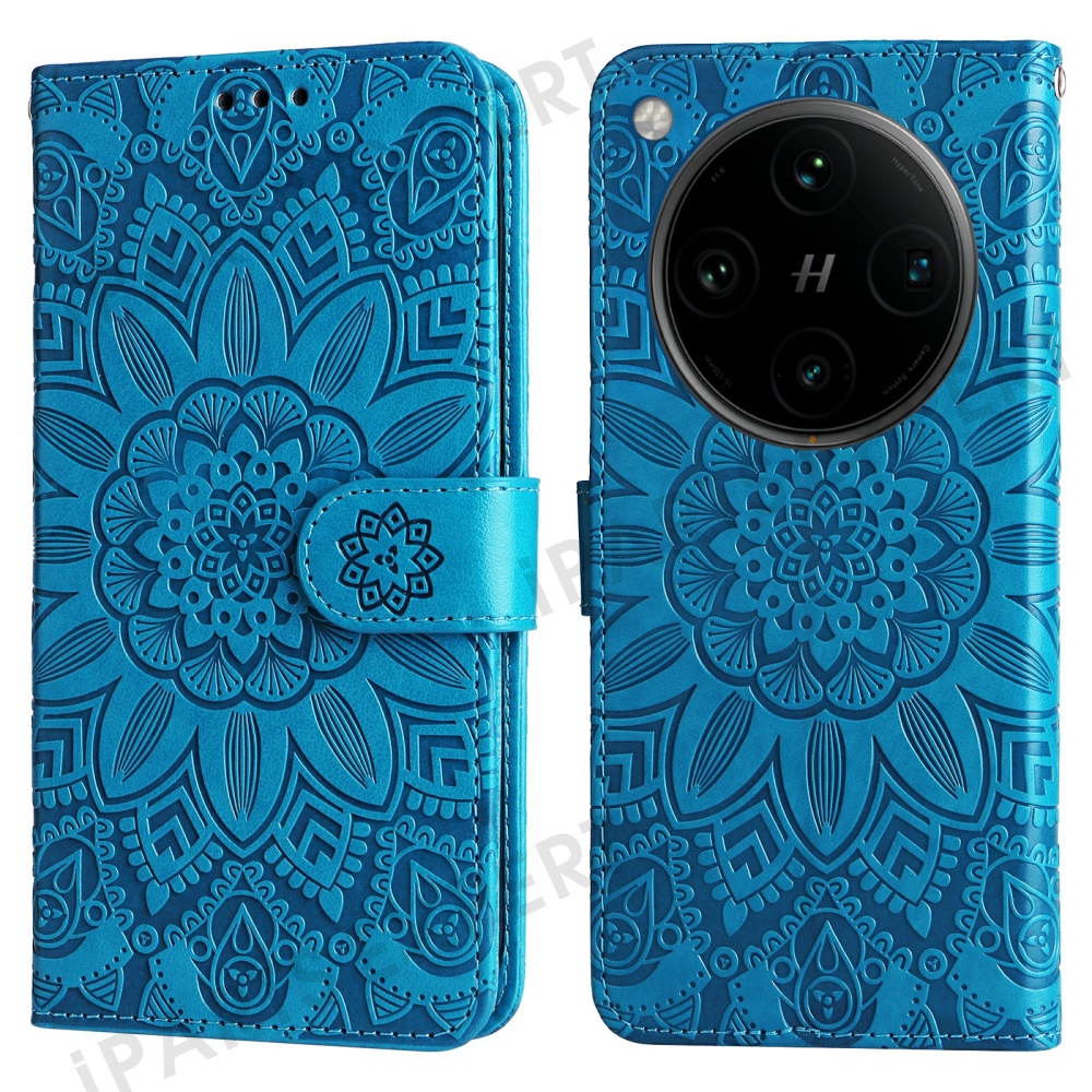 For Oppo Find X8 Pro 5G Case Sunflower Imprint Leather Wallet Phone Cover - Blue