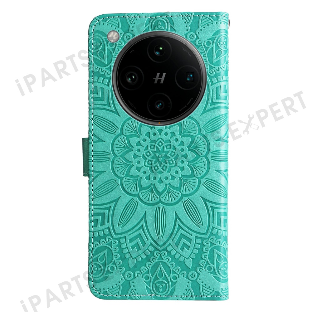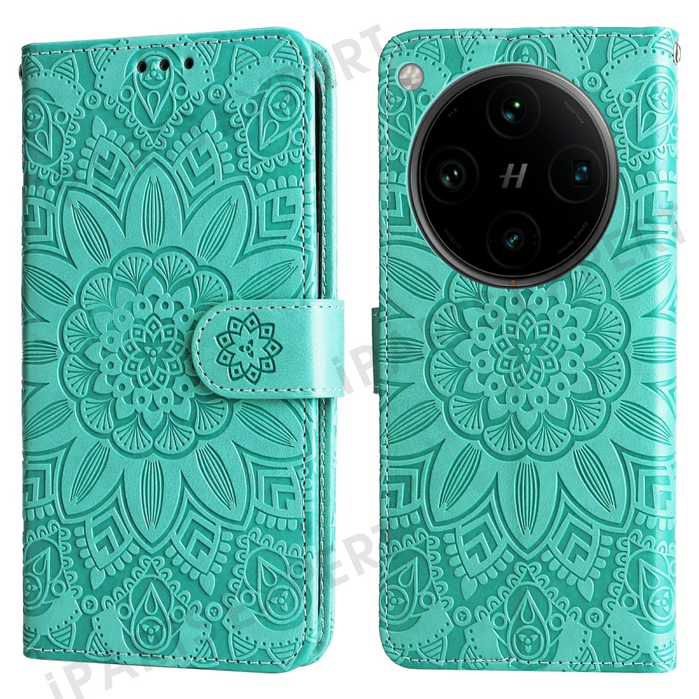 For Oppo Find X8 Pro 5G Case Sunflower Imprint Leather Wallet Phone Cover - Green