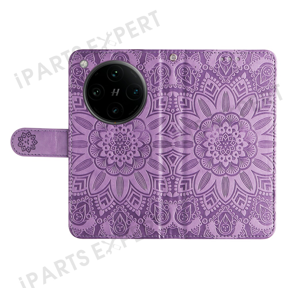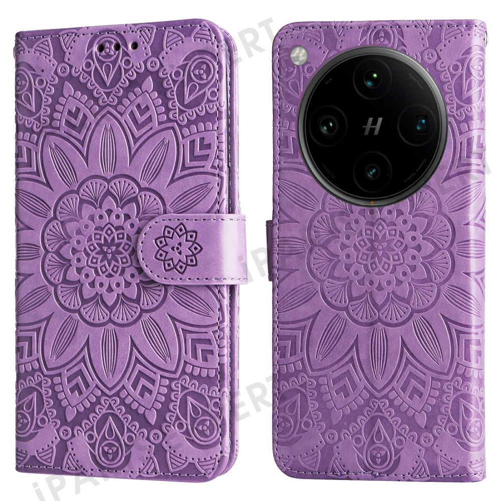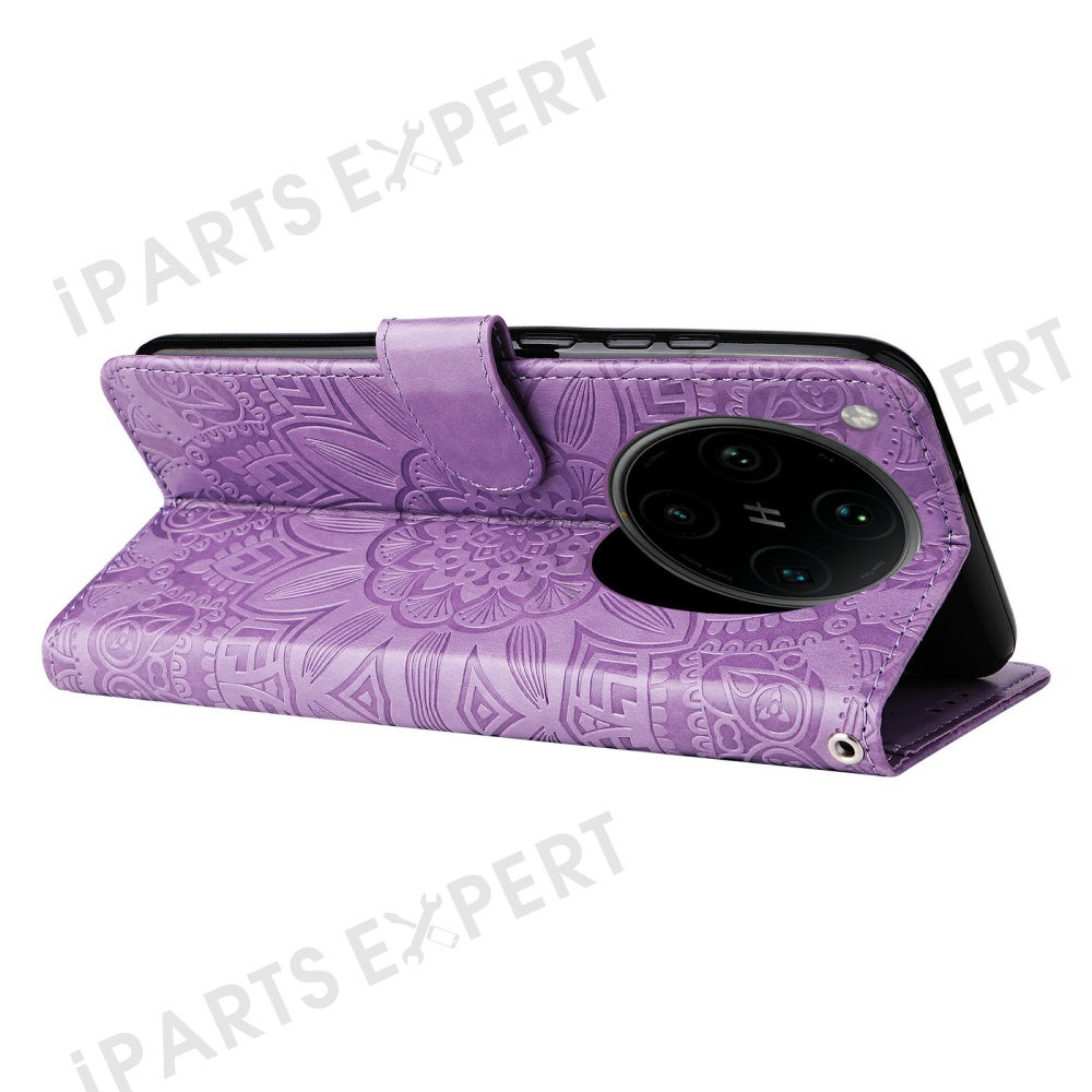 For Oppo Find X8 Pro 5G Case Sunflower Imprint Leather Wallet Phone Cover - Purple