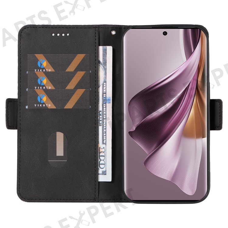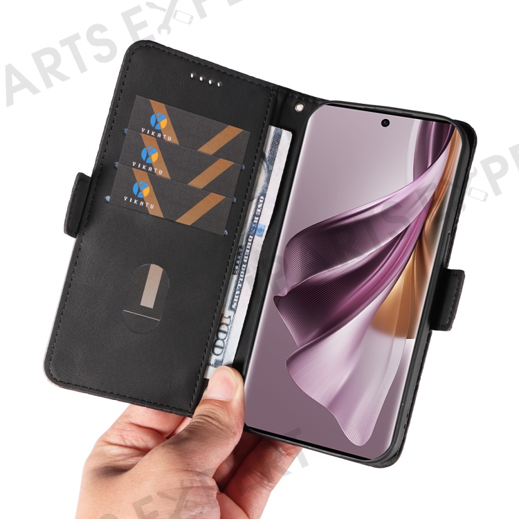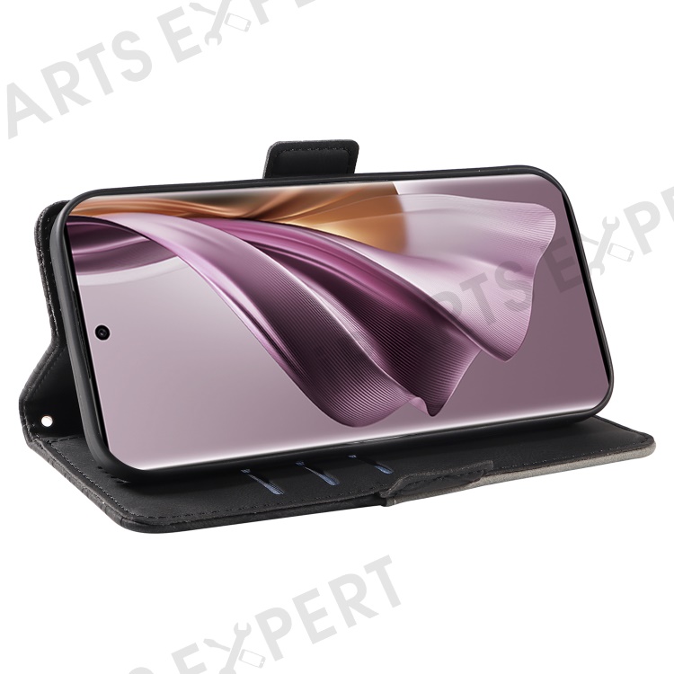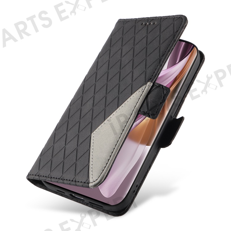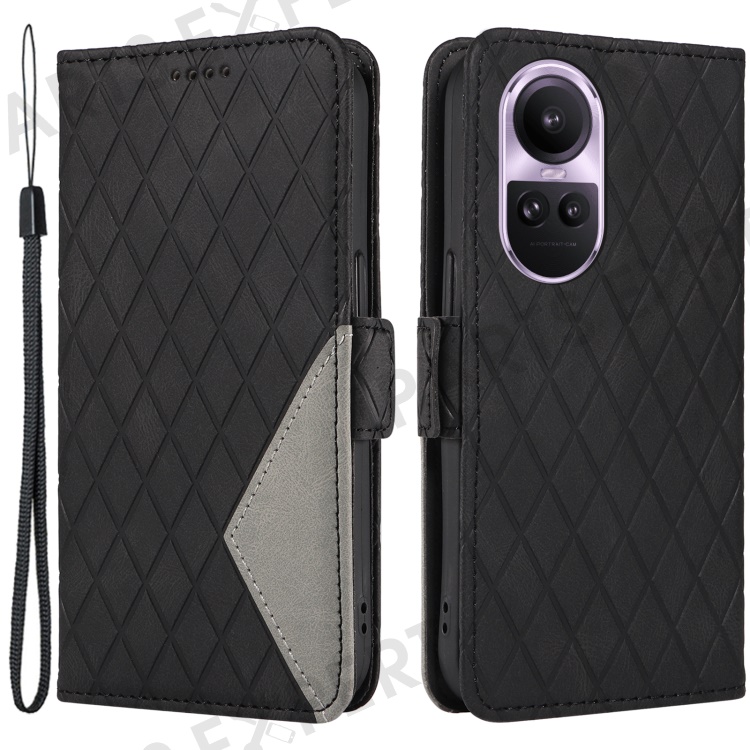 For Oppo Reno10 5G (Global) / Reno10 Pro 5G (Global) Splicing Wallet Phone Case Rhombus Imprinted Leather Stand Cover - Black