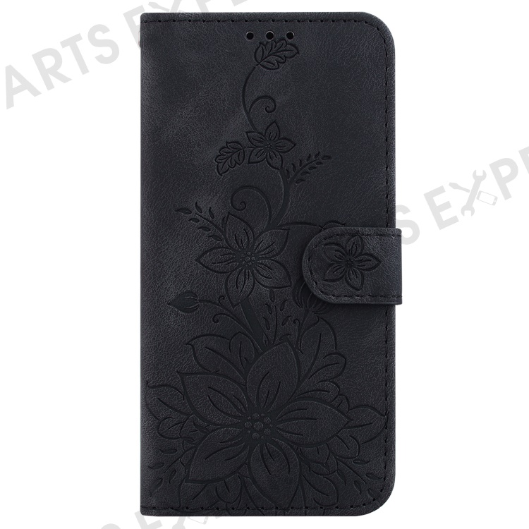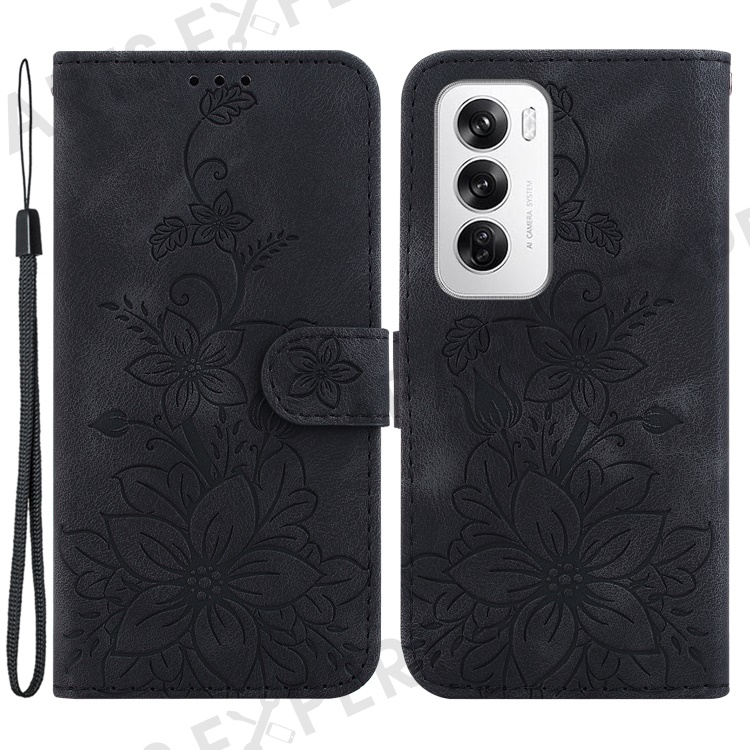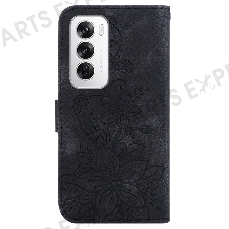 For Oppo Reno12 5G (Global) Case Lily Flower Imprint Leather Stand Phone Cover - Black