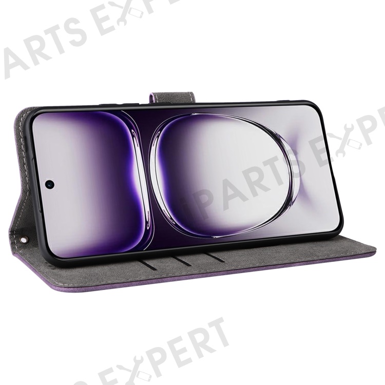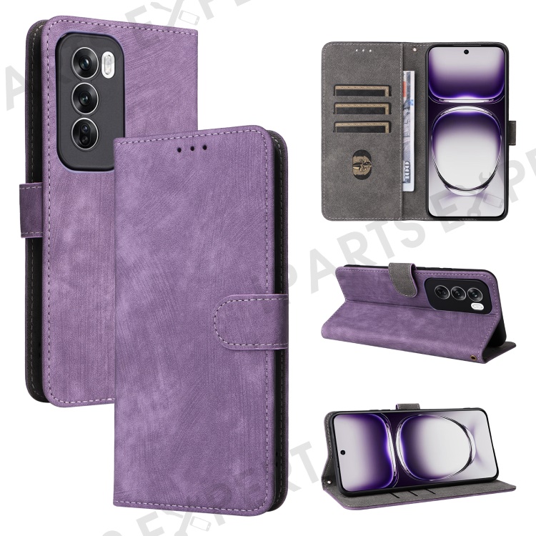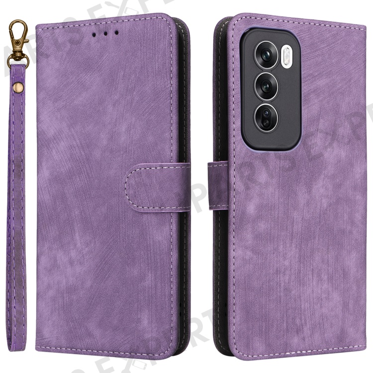 For Oppo Reno12 5G (Global) Case with Hand Strap RFID Blocking Leather Phone Cover - Purple