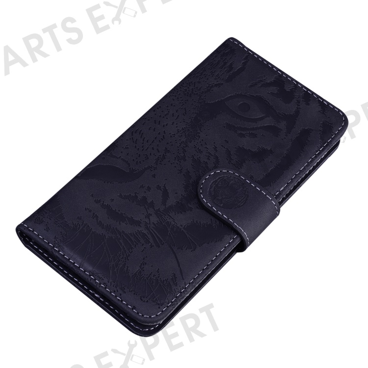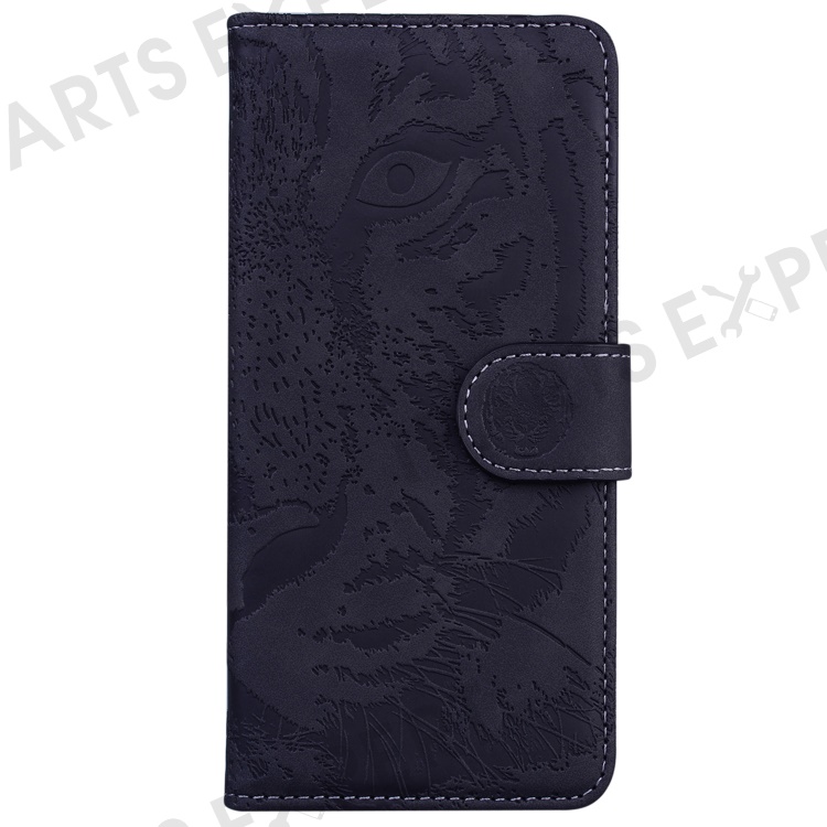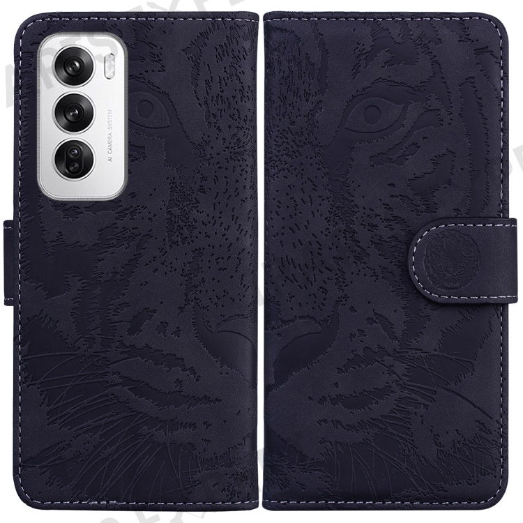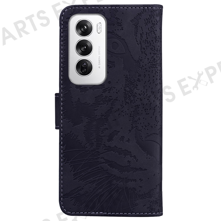 For Oppo Reno12 5G (Global) Wallet Phone Case Tiger Imprint Leather Flip Cover - Black