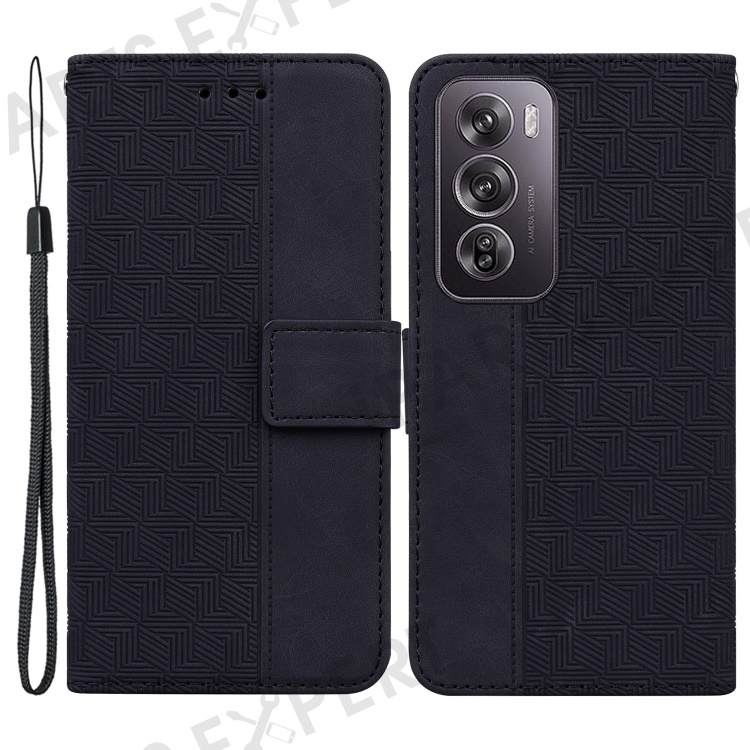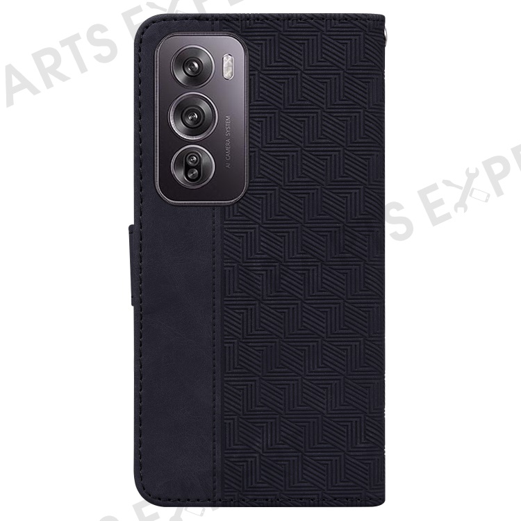 For Oppo Reno12 Pro 5G (Global) Phone Case Geometry Pattern Leather Wallet Cover - Black