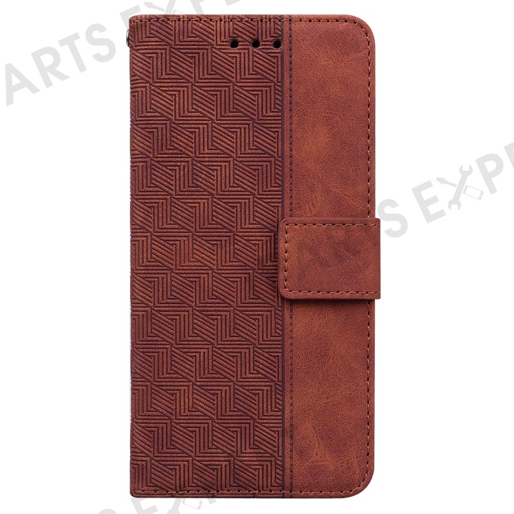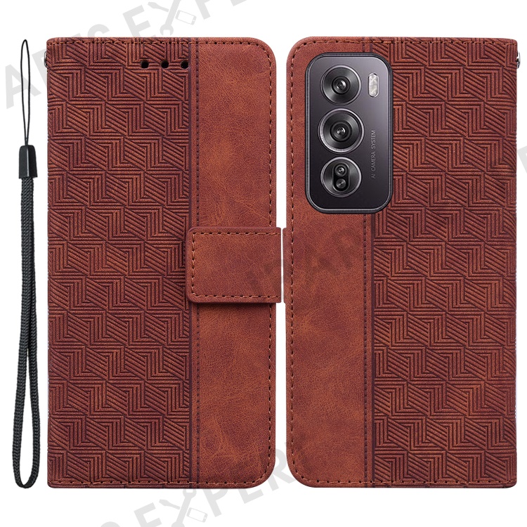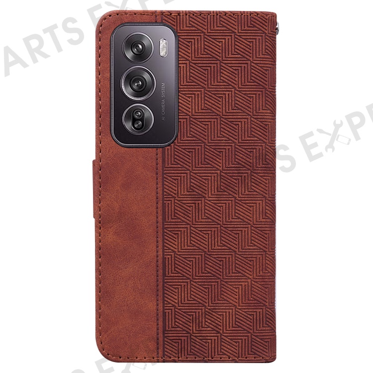 For Oppo Reno12 Pro 5G (Global) Phone Case Geometry Pattern Leather Wallet Cover - Brown
