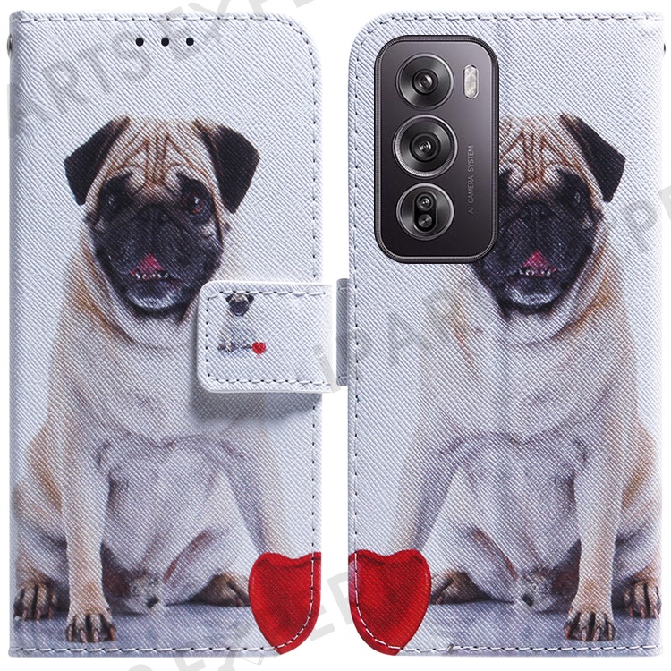 For Oppo Reno12 Pro 5G (Global) Wallet Case Pattern Print Leather Phone Cover - Dog