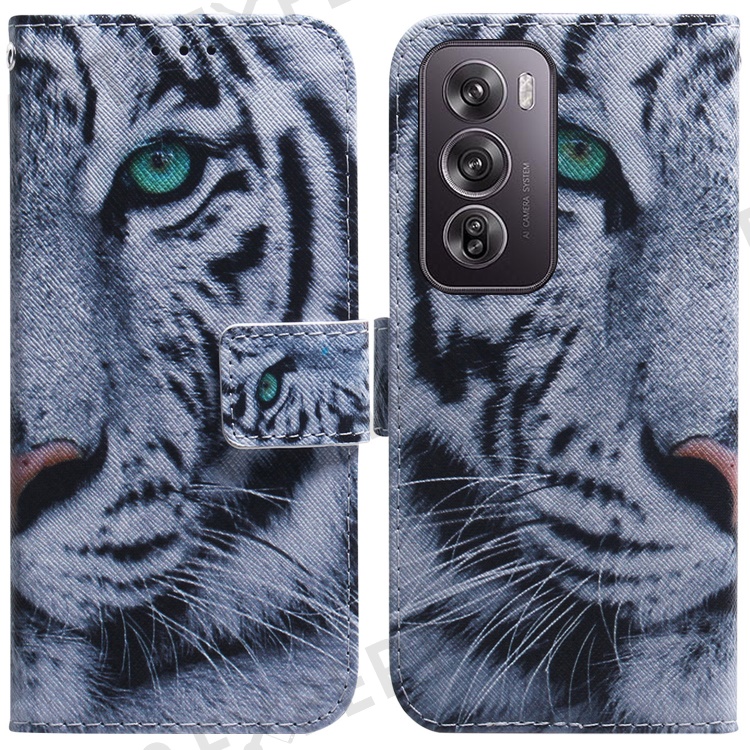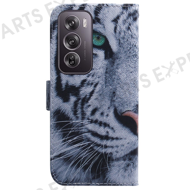 For Oppo Reno12 Pro 5G (Global) Wallet Case Pattern Print Leather Phone Cover - Tiger