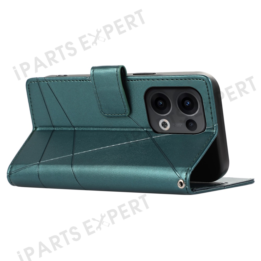 For Oppo Reno13 5G (Global) Phone Case Line Imprint Leather Wallet Cover - Green