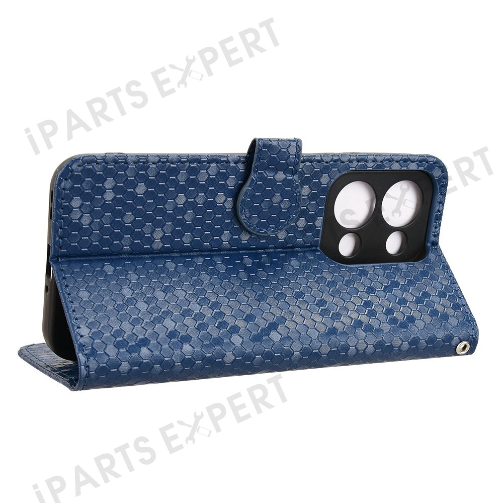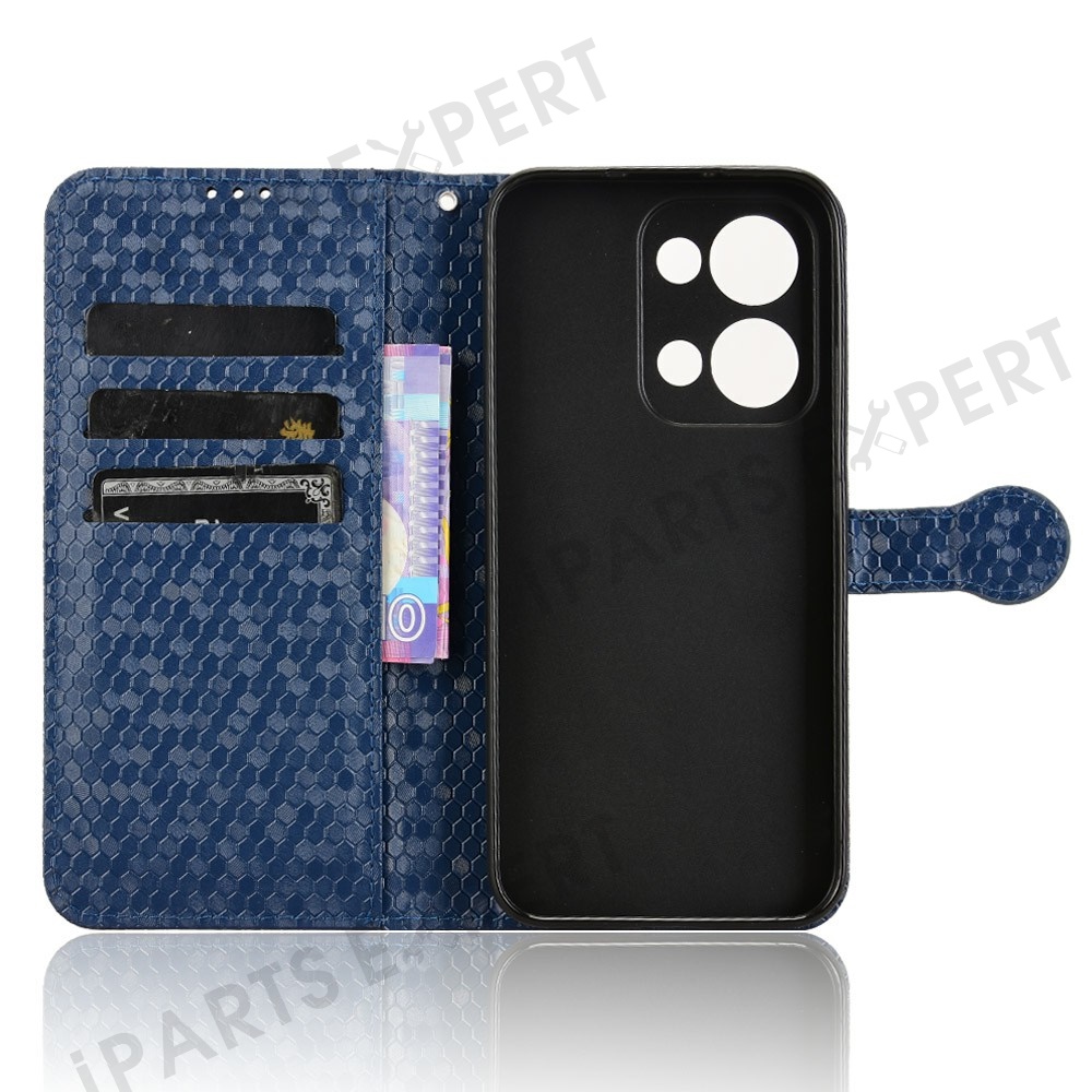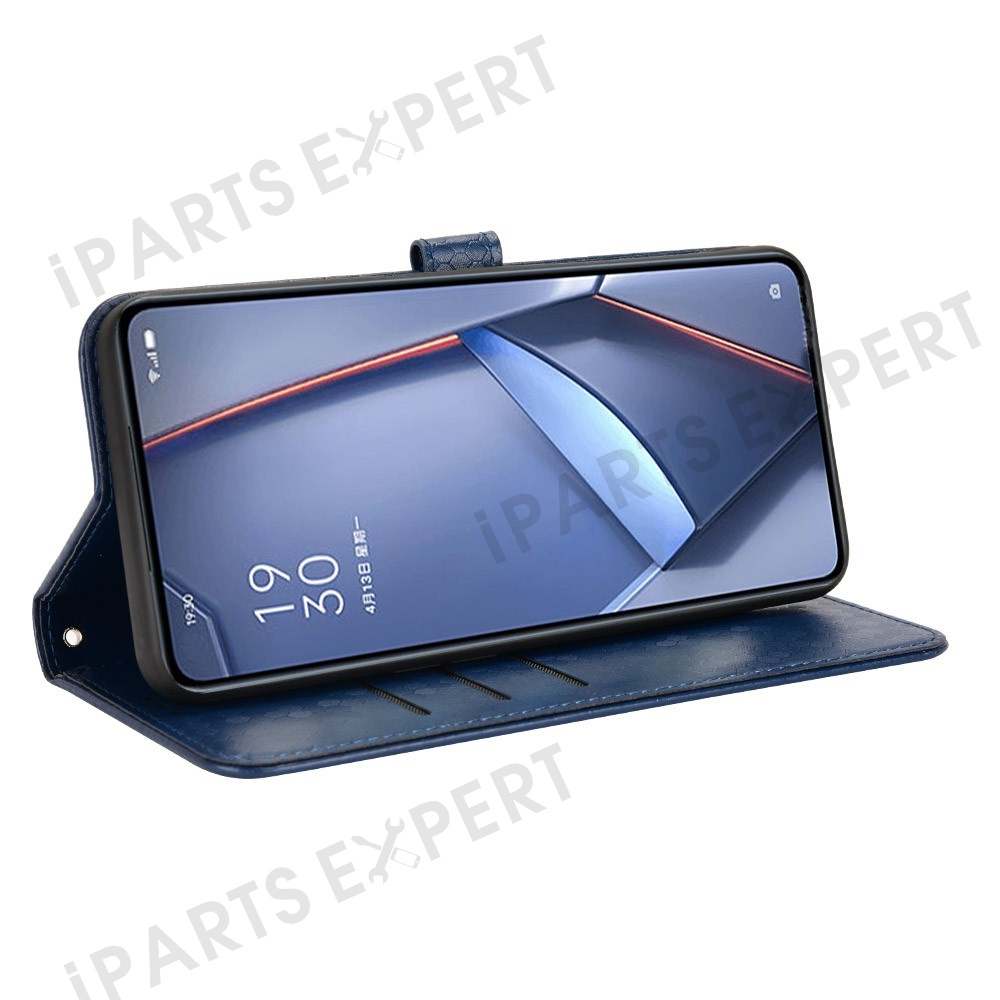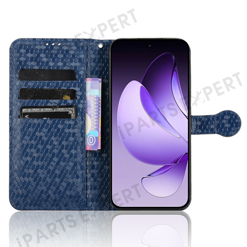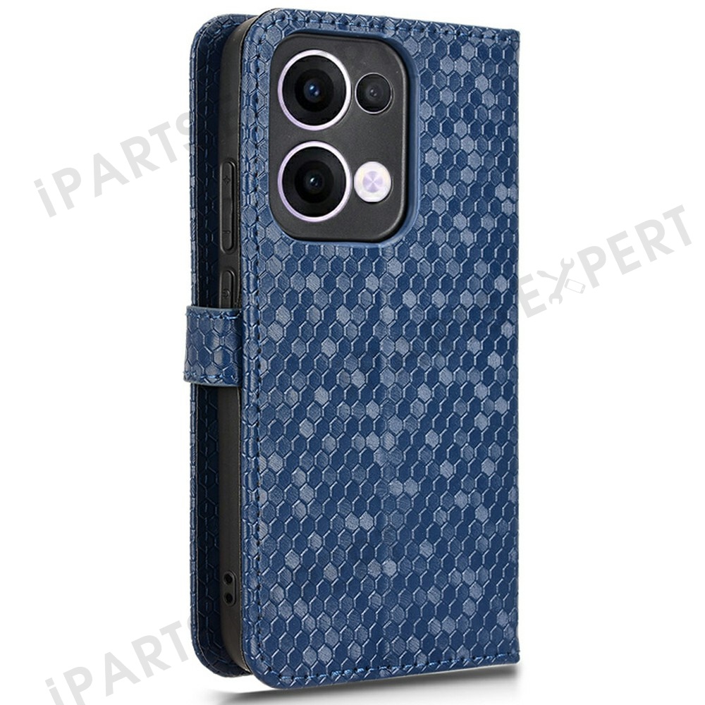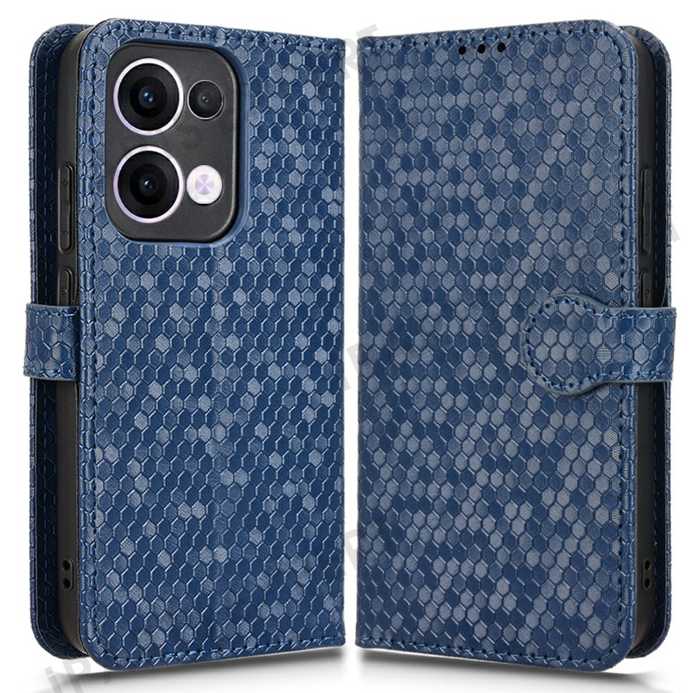 For Oppo Reno13 5G (Global) Wallet Case Dot Pattern Imprint PU Leather Phone Cover - Dark Blue