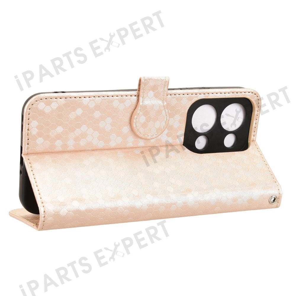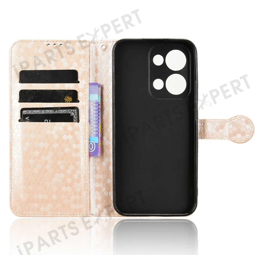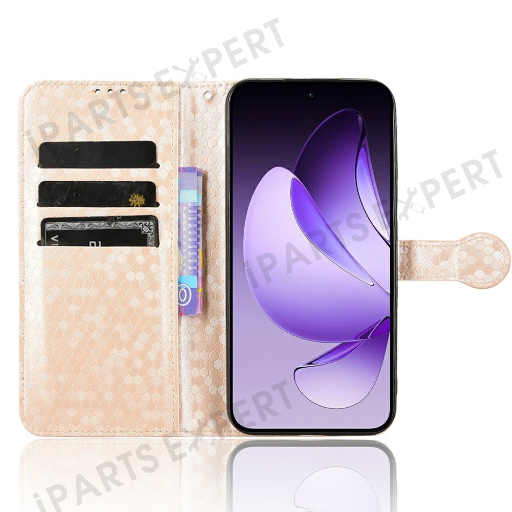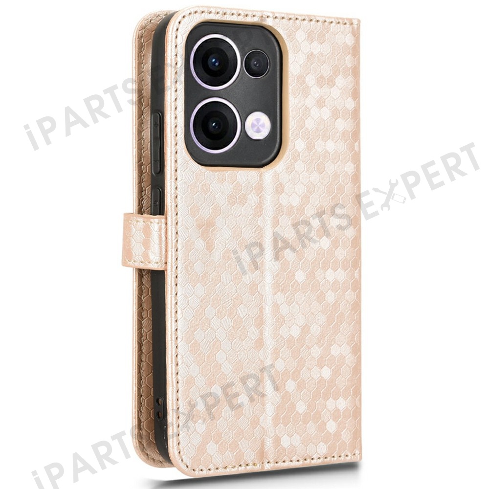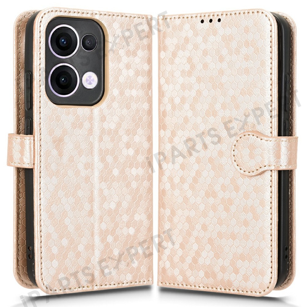 For Oppo Reno13 5G (Global) Wallet Case Dot Pattern Imprint PU Leather Phone Cover - Rose Gold