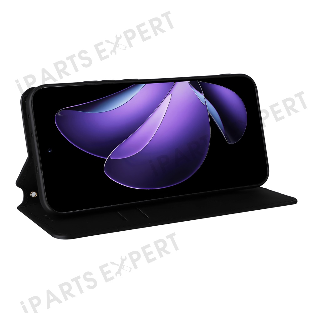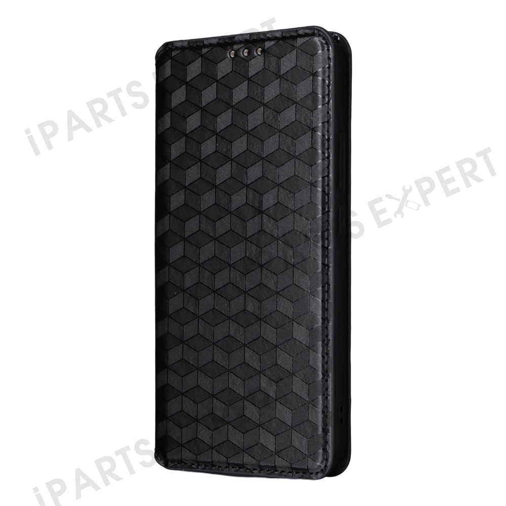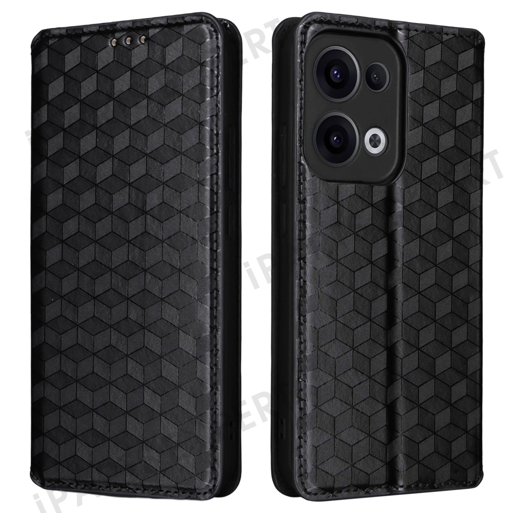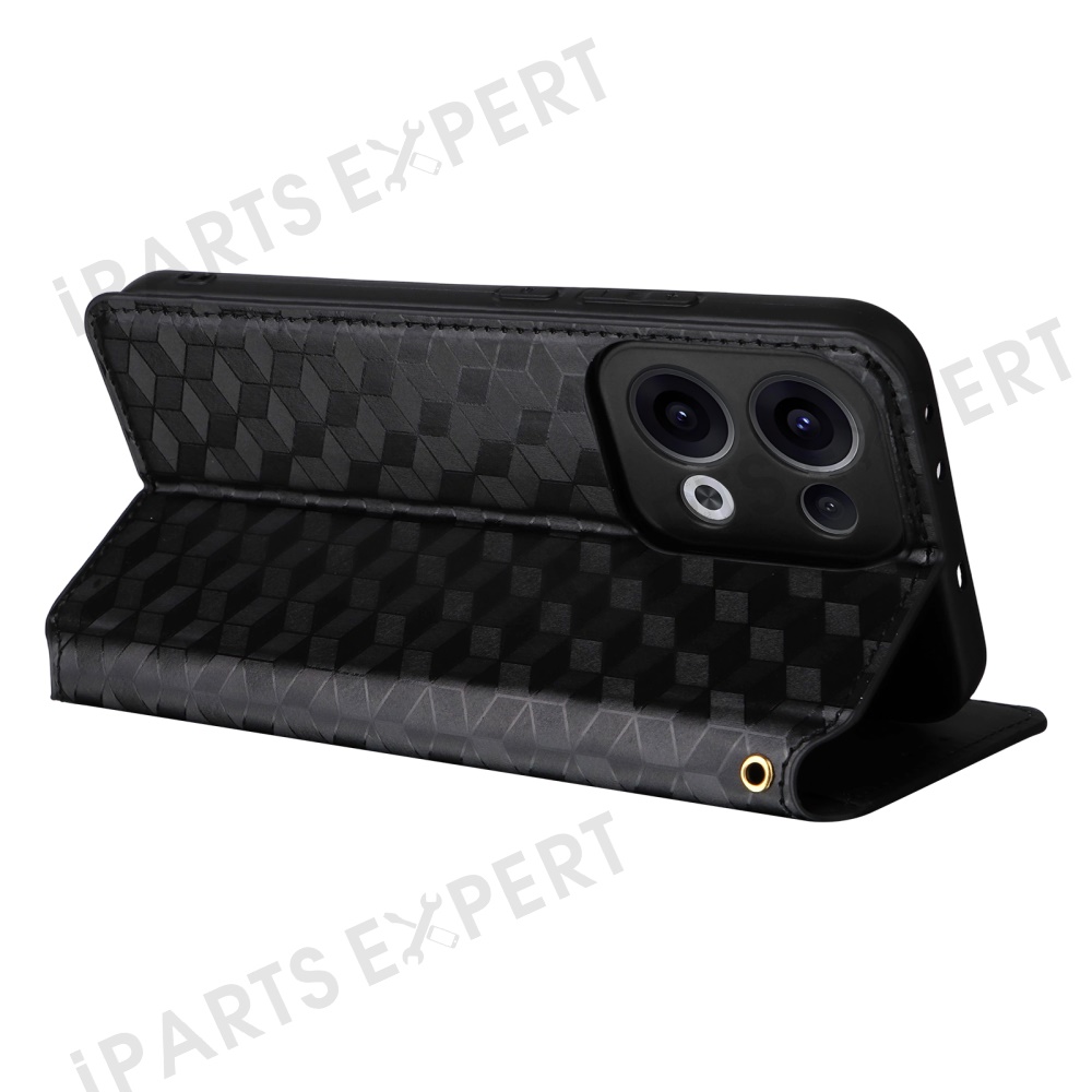 For Oppo Reno13 5G (Global) Wallet Case Rhombus Imprinted Leather Phone Cover - Black