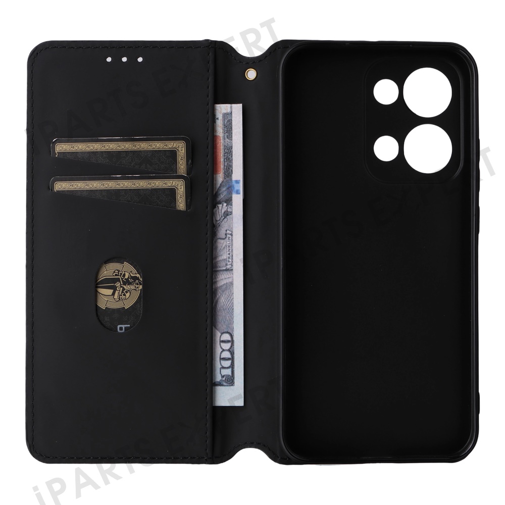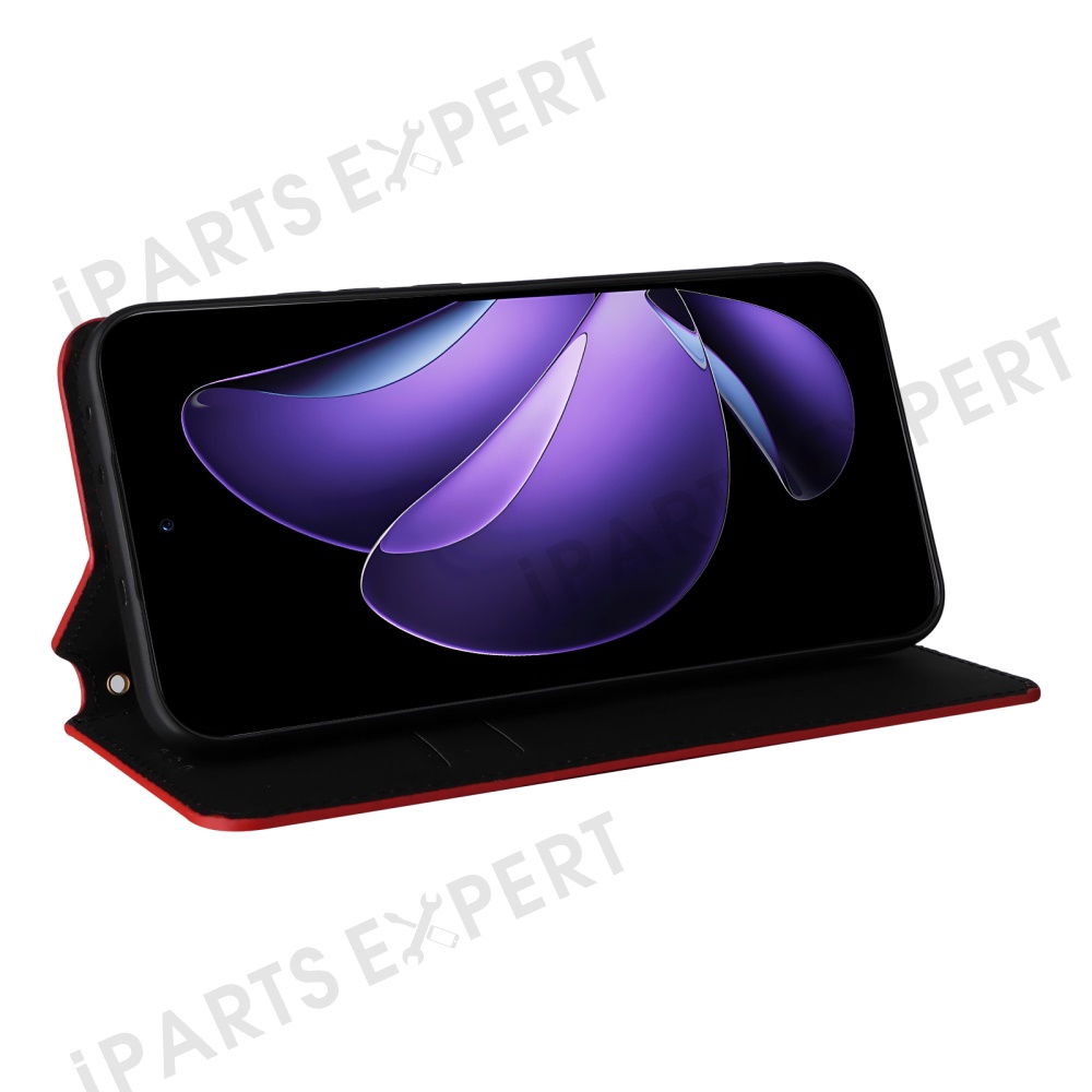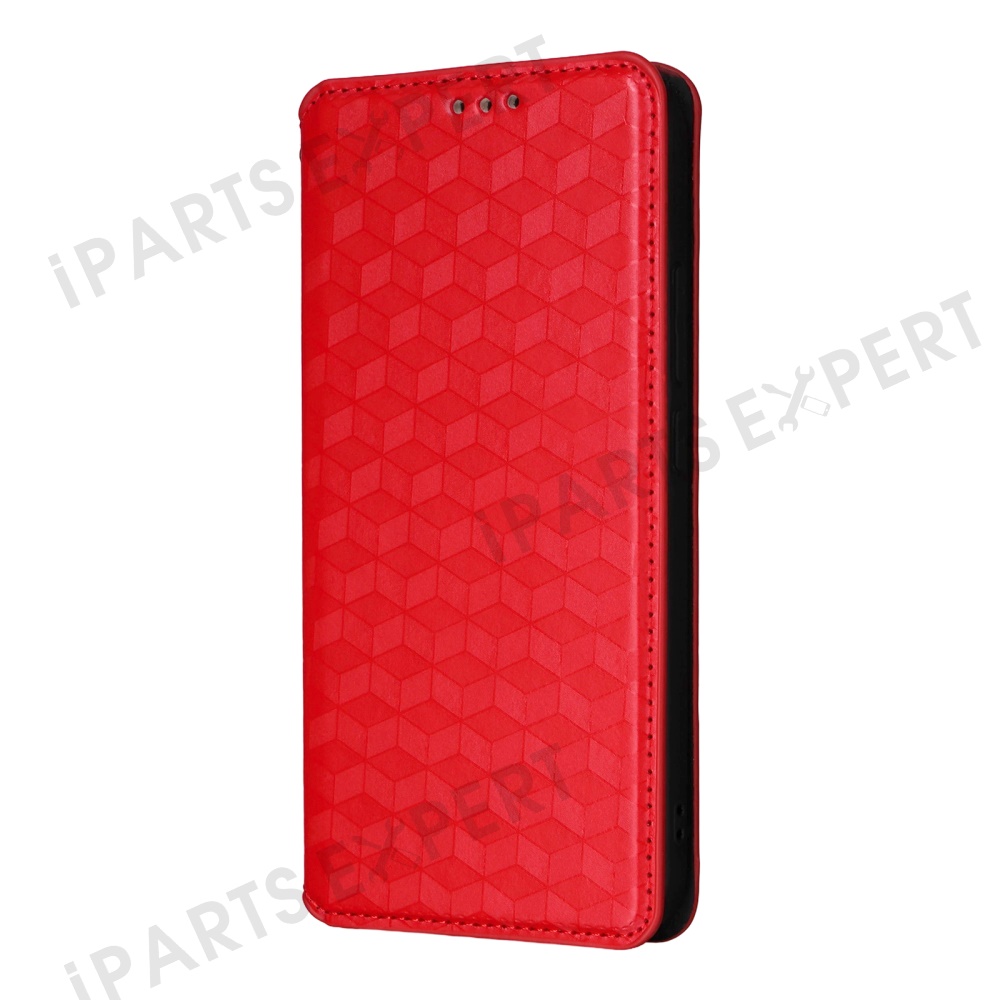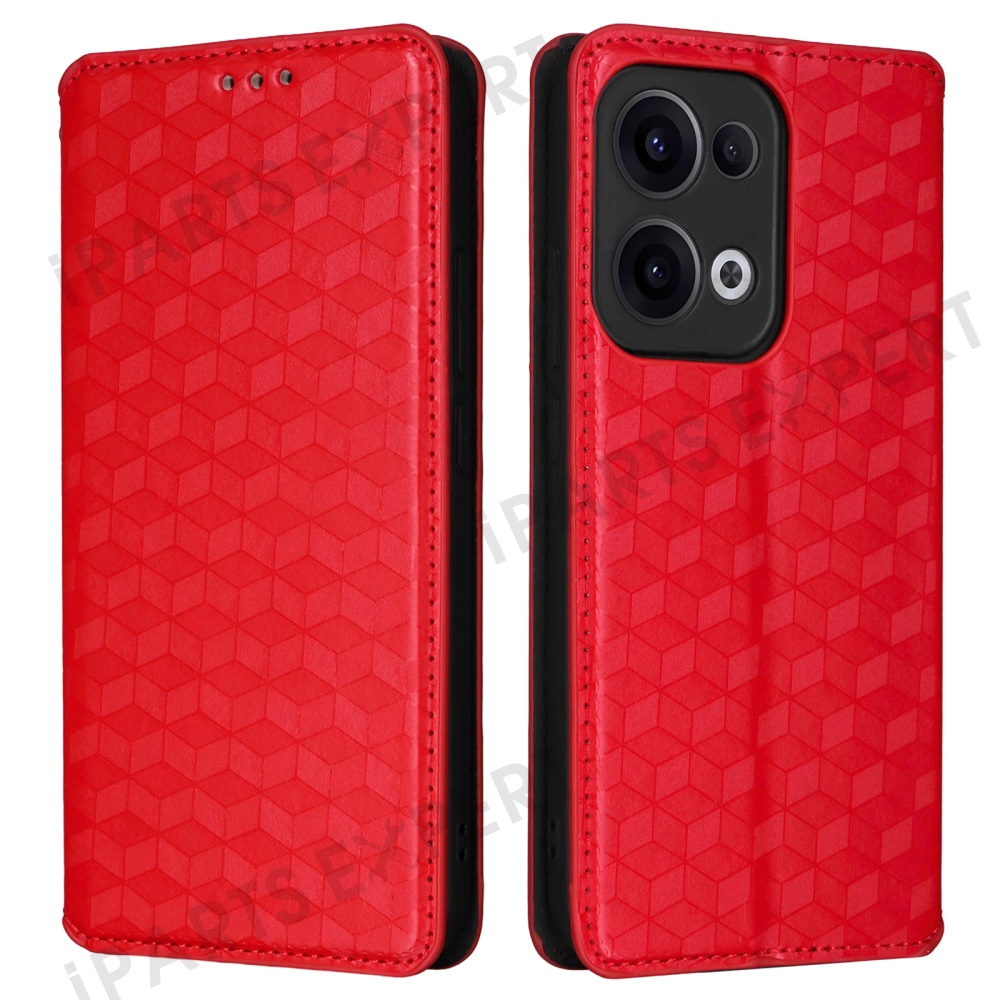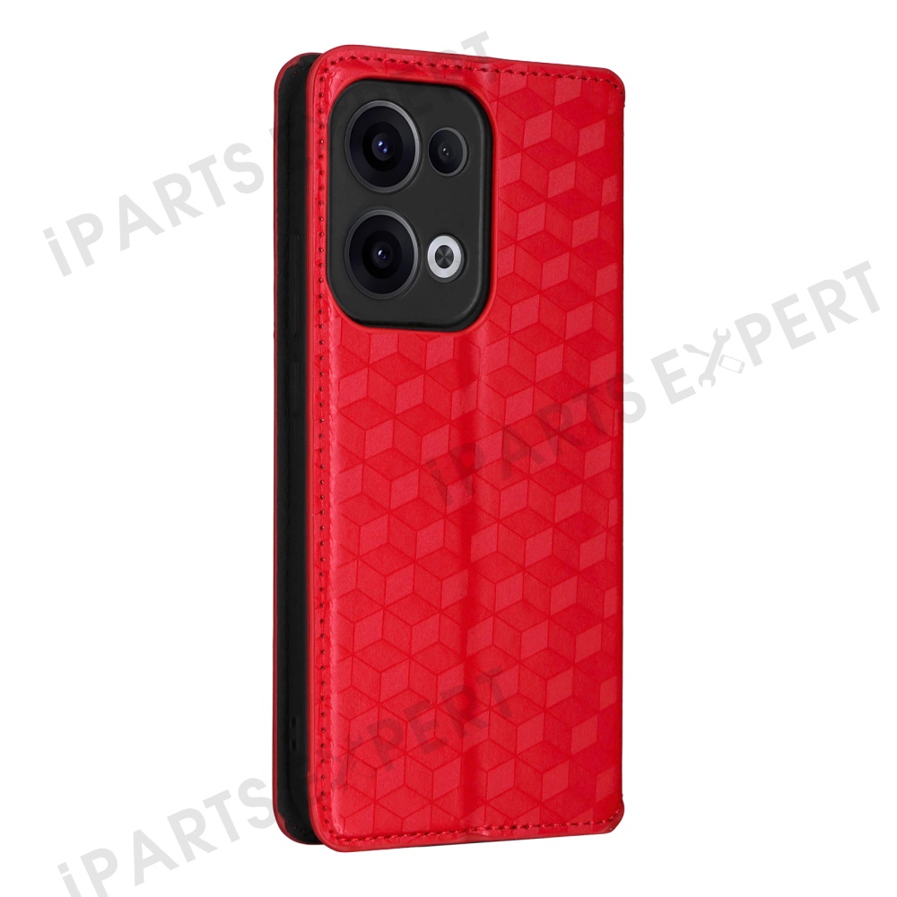 For Oppo Reno13 5G (Global) Wallet Case Rhombus Imprinted Leather Phone Cover - Red