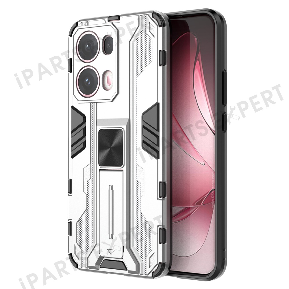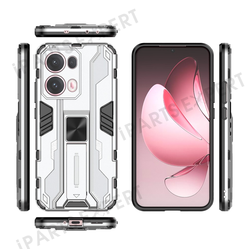 For Oppo Reno13 Pro 5G Case PC + TPU Shockproof Phone Cover with Kickstand - Silver