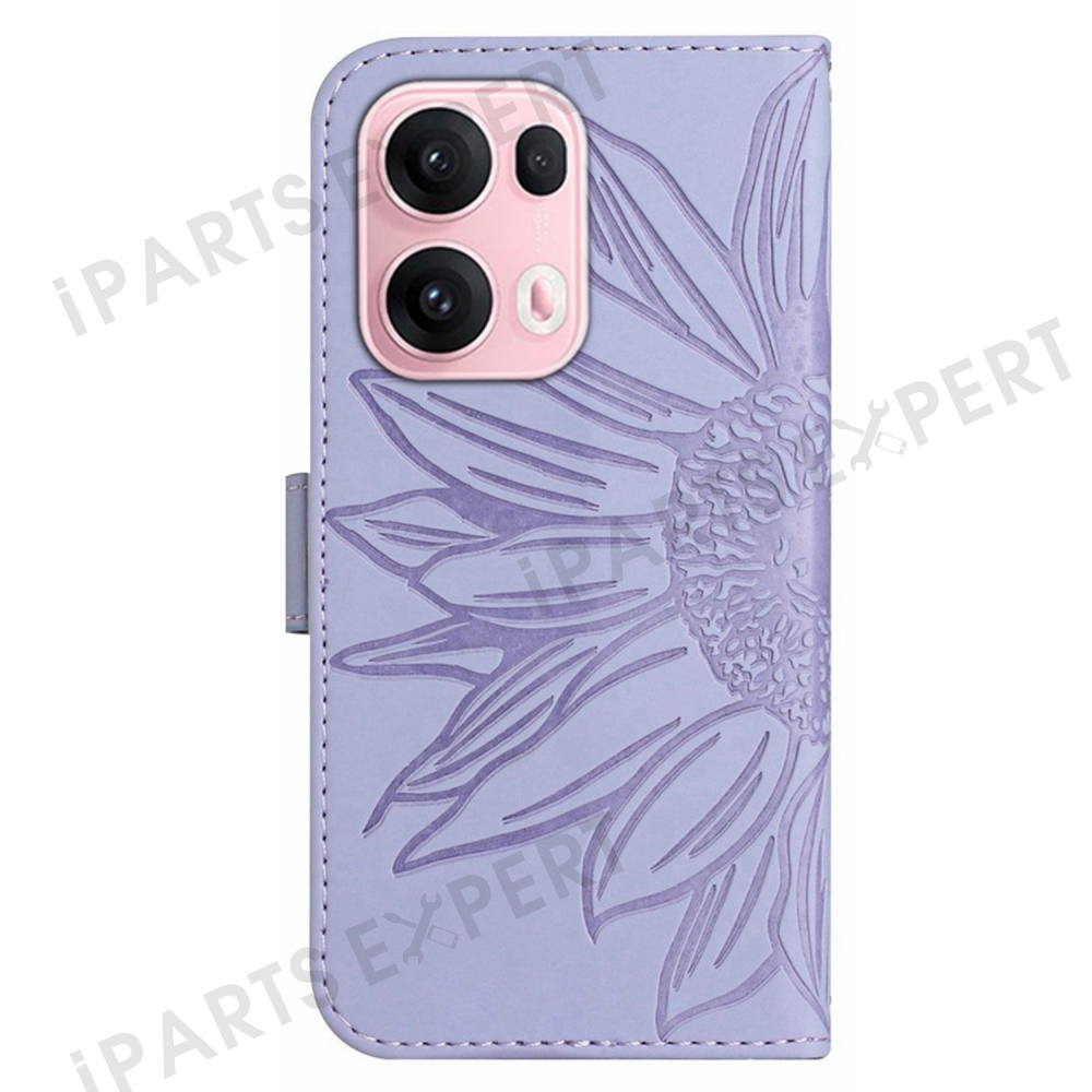 For Oppo Reno13 Pro 5G Case Sunflower Imprint Leather Wallet Phone Cover with Wrist Strap - Light Purple