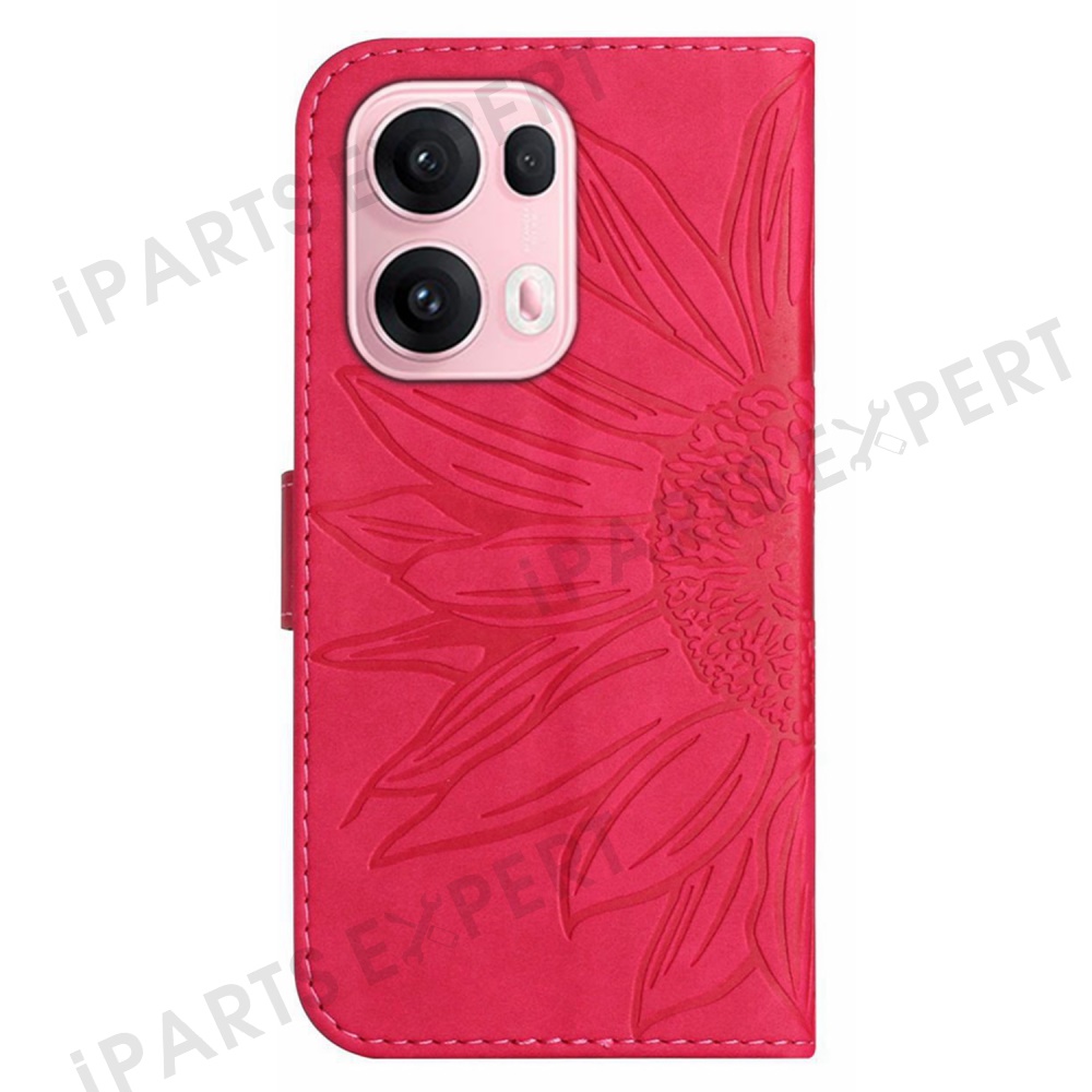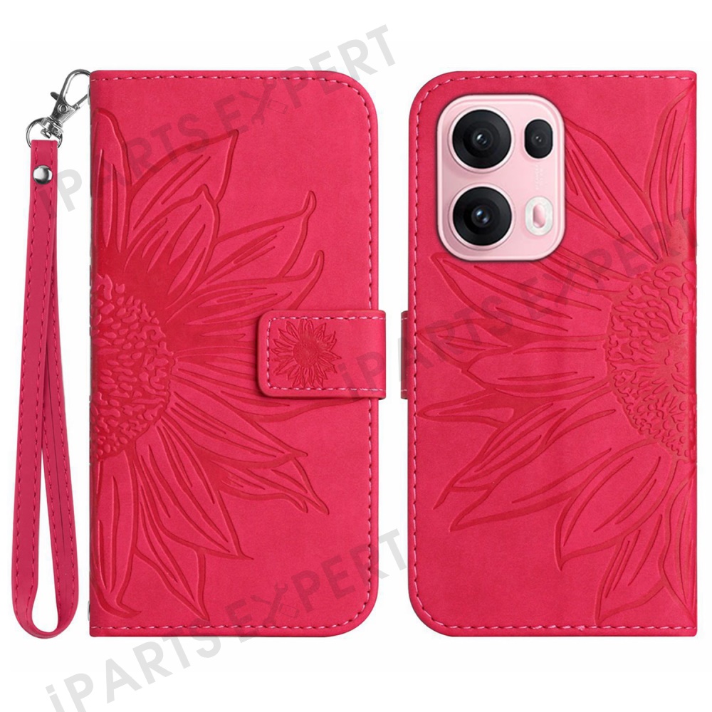 For Oppo Reno13 Pro 5G Case Sunflower Imprint Leather Wallet Phone Cover with Wrist Strap - Rose