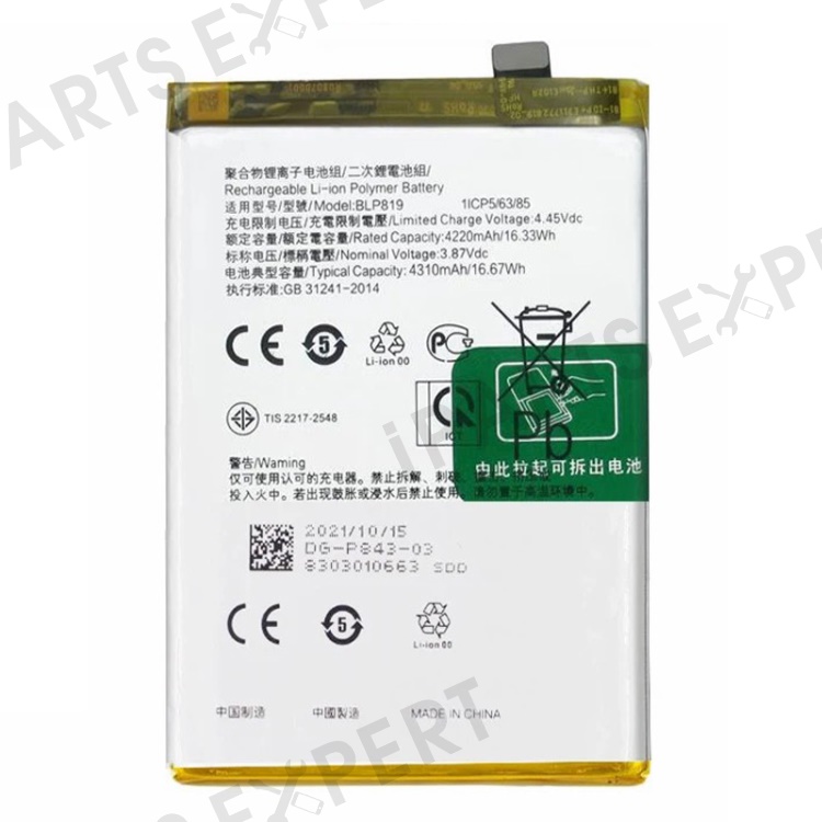 For Oppo Reno6 4G / Reno6 Z / F19 Pro+ 5G 4220mAh Li-ion Polymer Battery Assembly Part (Encode: BLP819) (without Logo)