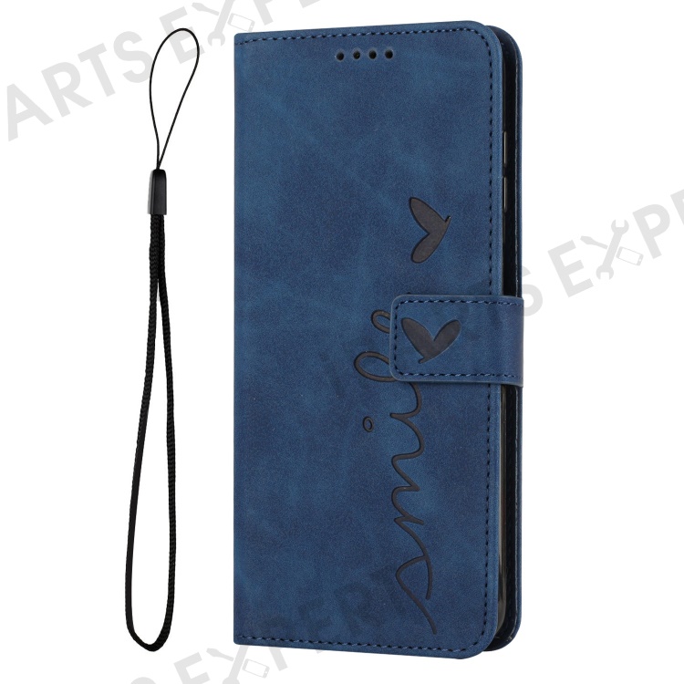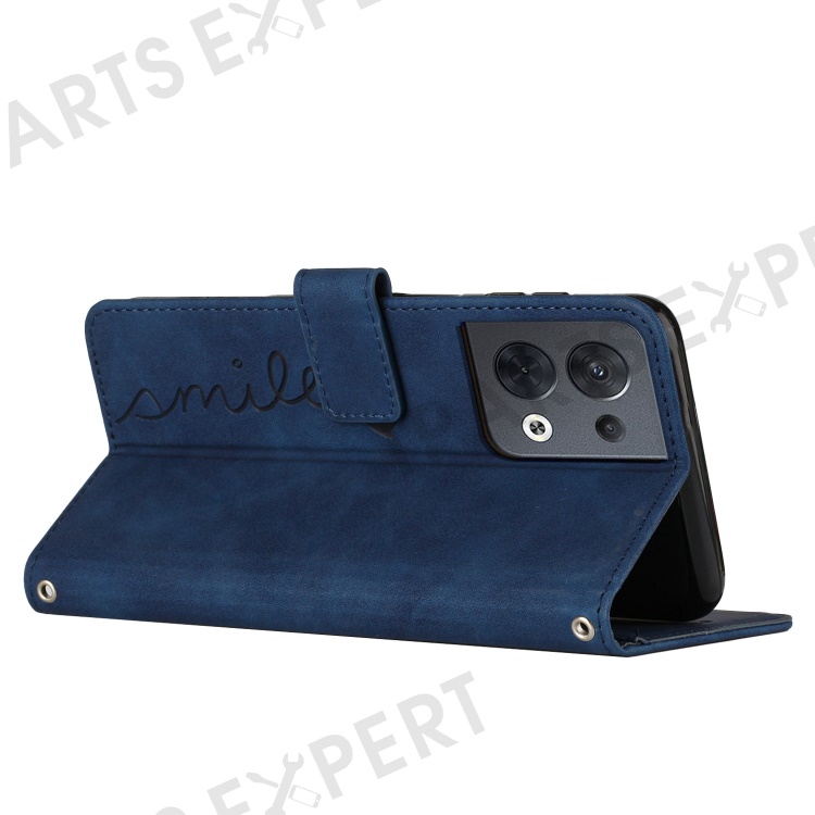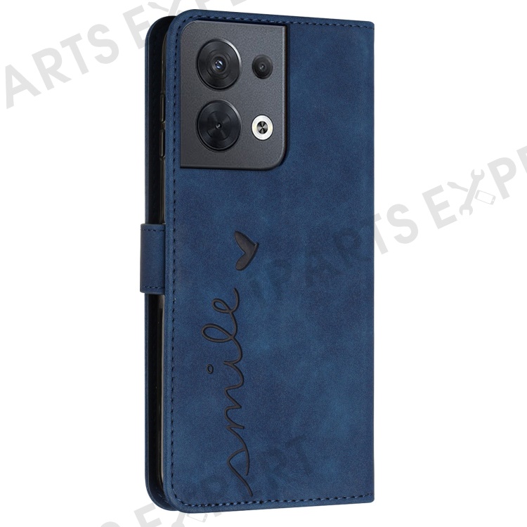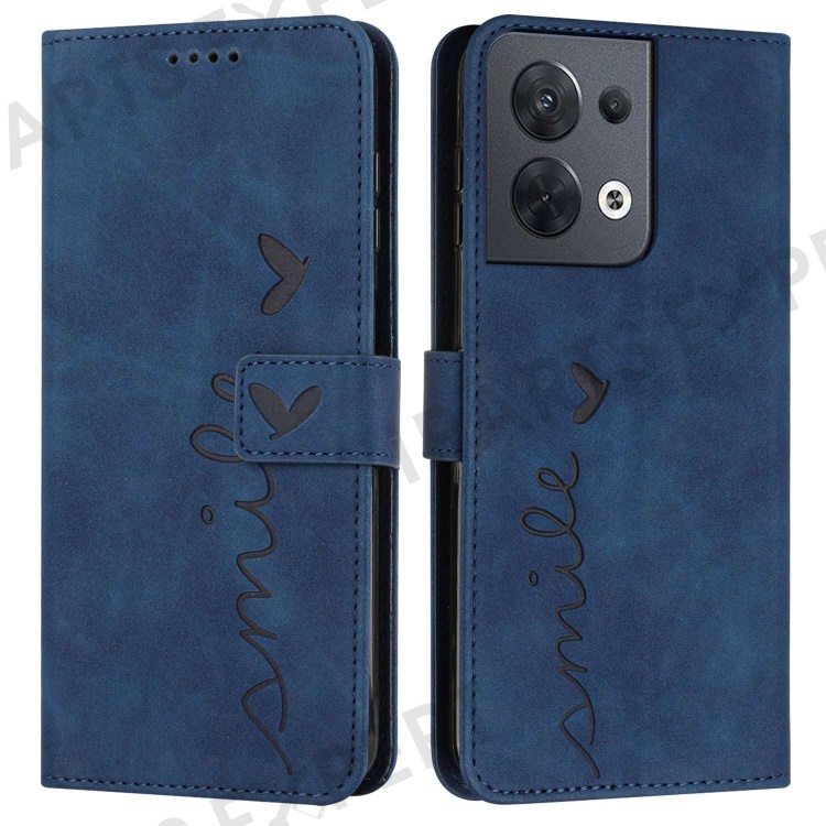 For Oppo Reno8 5G (Global Version) / Reno8 5G Heart Shape Imprinting Phone Wallet Stand Case Skin-touch PU Leather Protective Cover - Sapphire