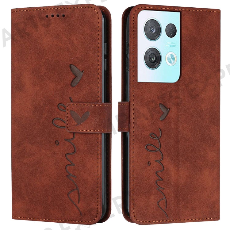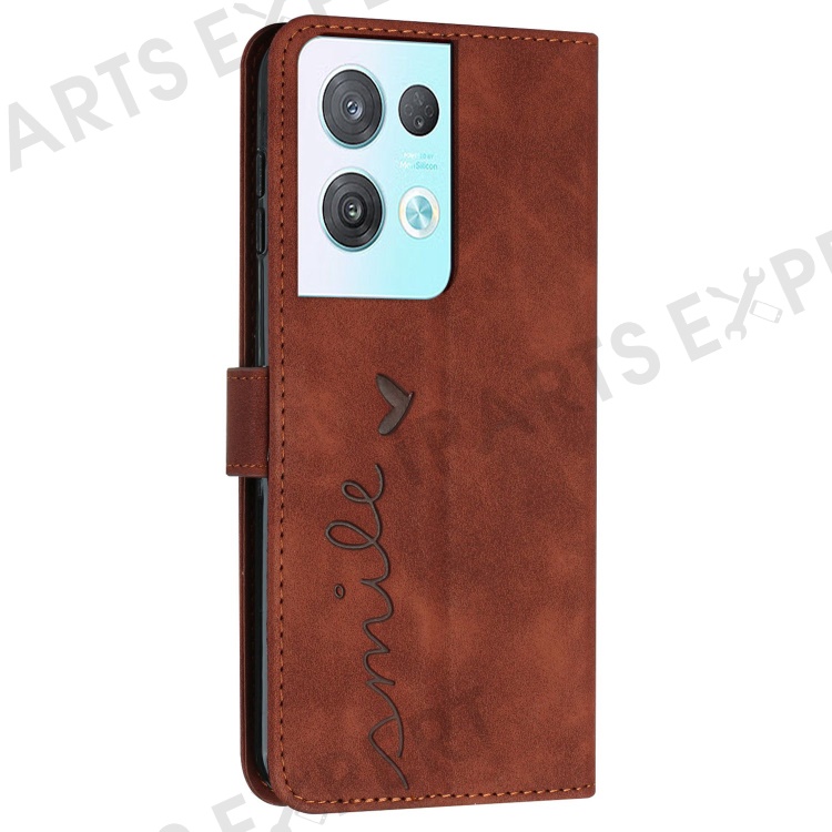For Oppo Reno8 Pro+ (China) 5G / Reno8 Pro 5G (Global Version) Heart Shape Imprint Phone Shockproof Case Skin-touch PU Leather Flip Stand Wallet Cover - Brown