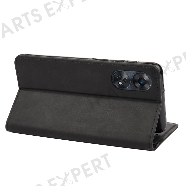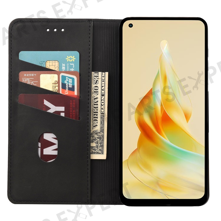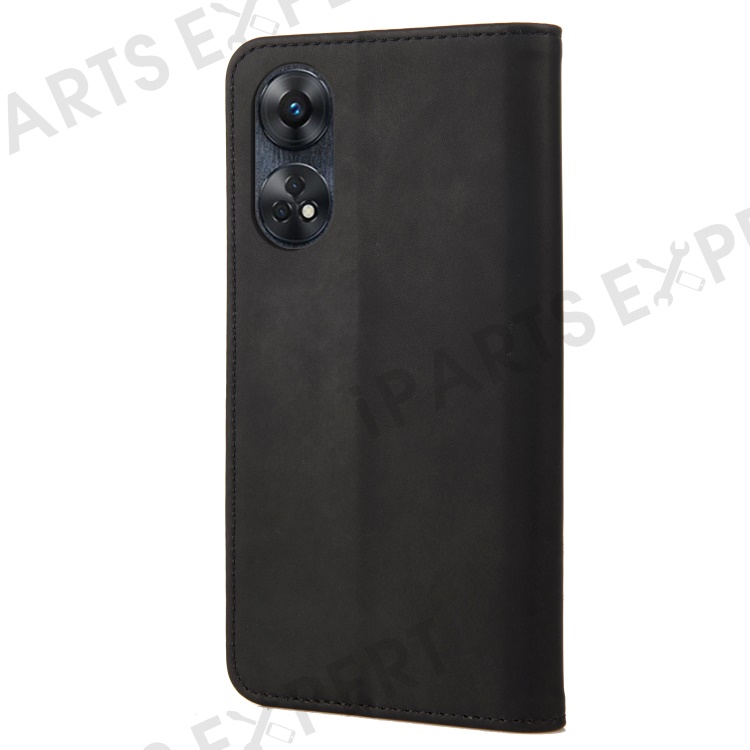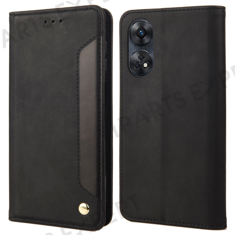 For Oppo Reno8 T 4G Phone Wallet Case PU Leather Color Splicing Stand Skin-touch Phone Cover - Black