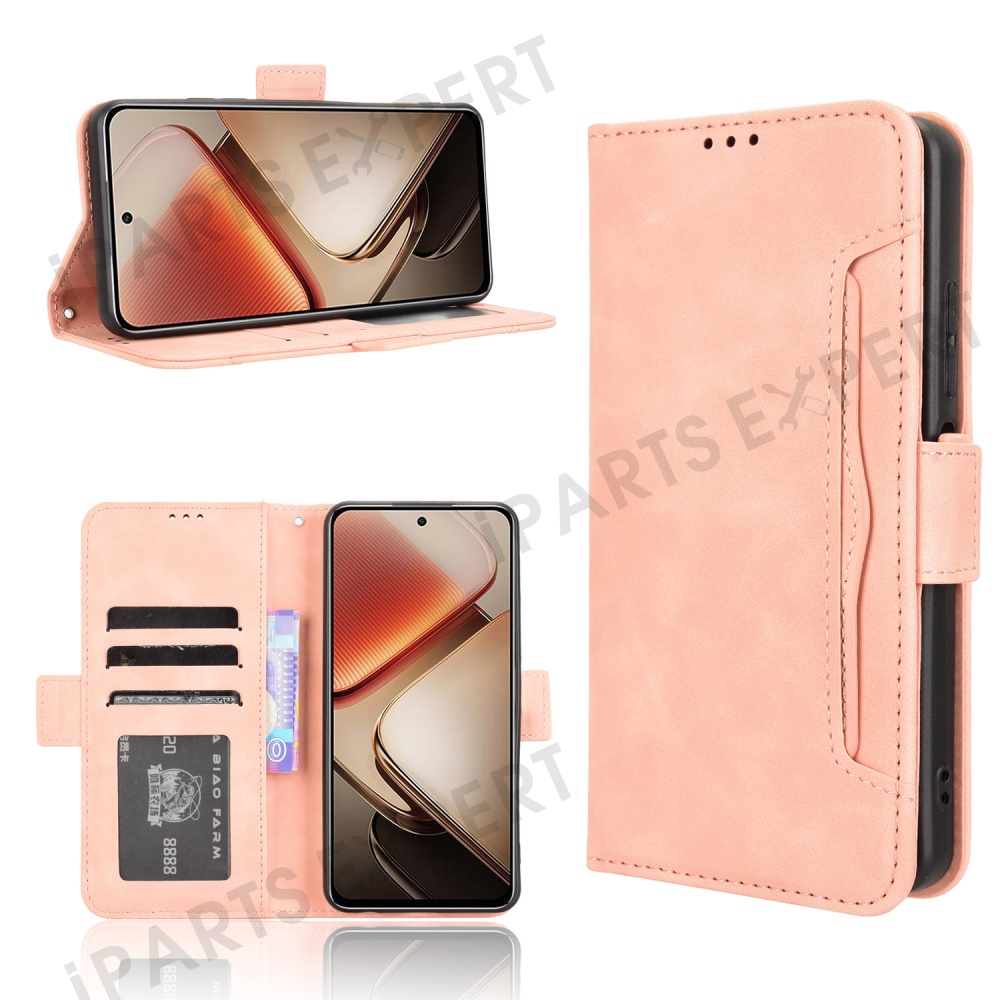 For Oukitel C58 Pro / C58 Leather Case Phone Wallet Cover with Multiple Card Slots - Pink