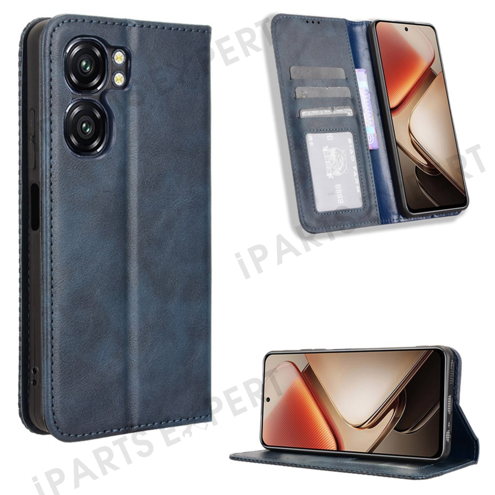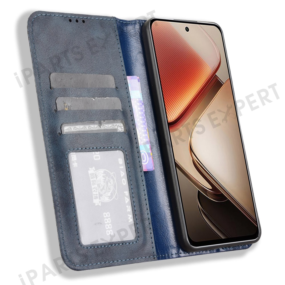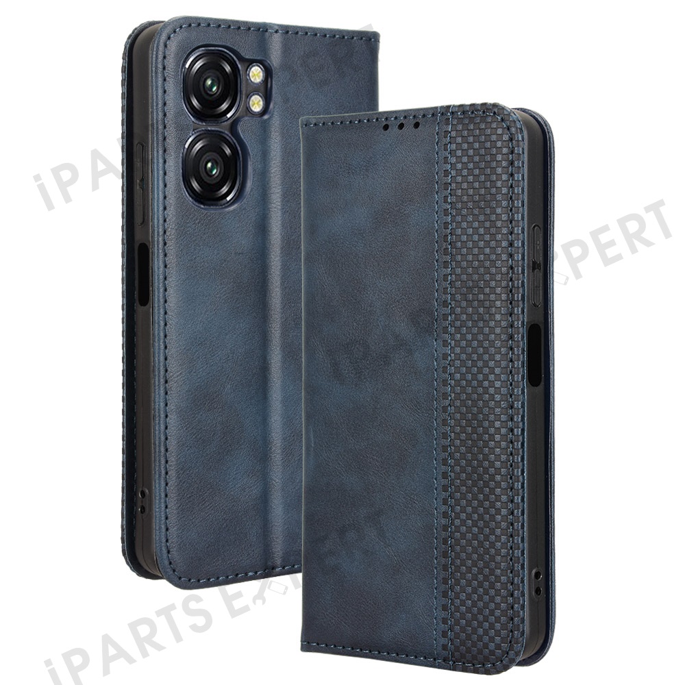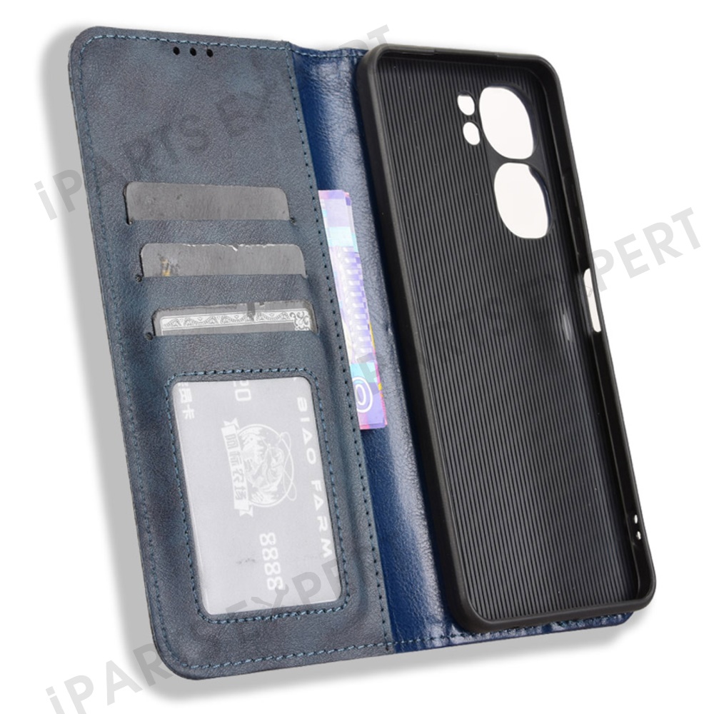 For Oukitel C58 Pro / C58 Leather Case Wallet Stand Retro Texture Phone Cover - Blue