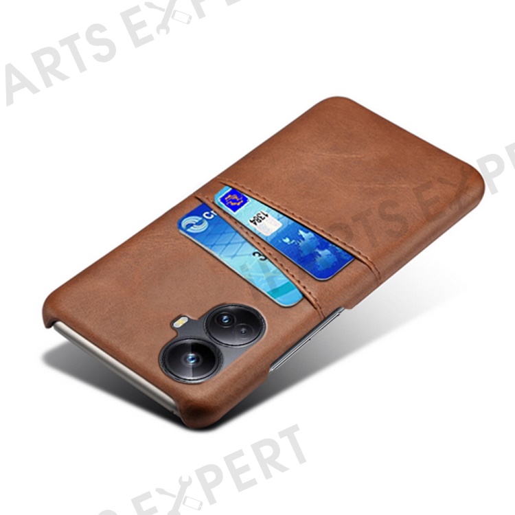For Realme 10 Pro+ 5G PU Leather Coated Hard PC Anti-Scratch Phone Case Dual Card Slots Non-Slip Protective Back Cover - Brown