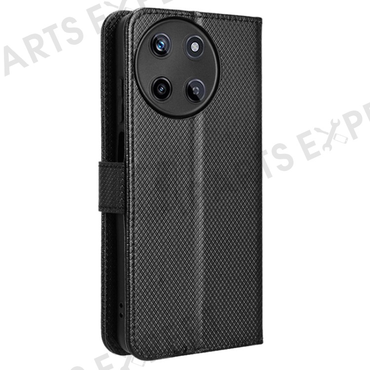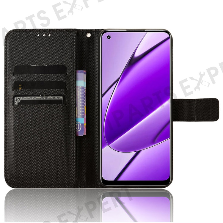 For Realme 11 4G (159.9x73.3x7.95mm) Phone Case PU Leather Wallet Flip Folio Cover - Black