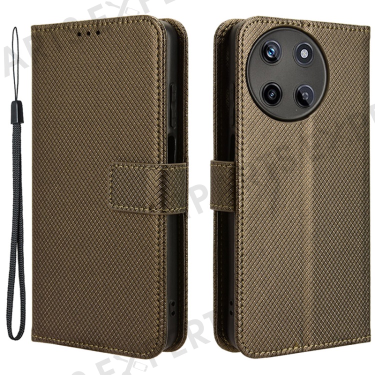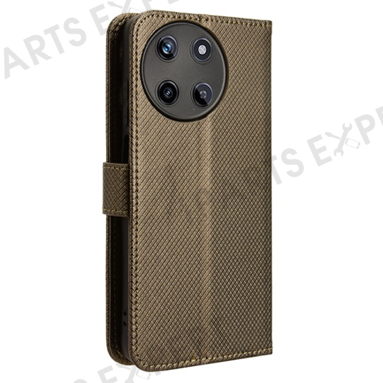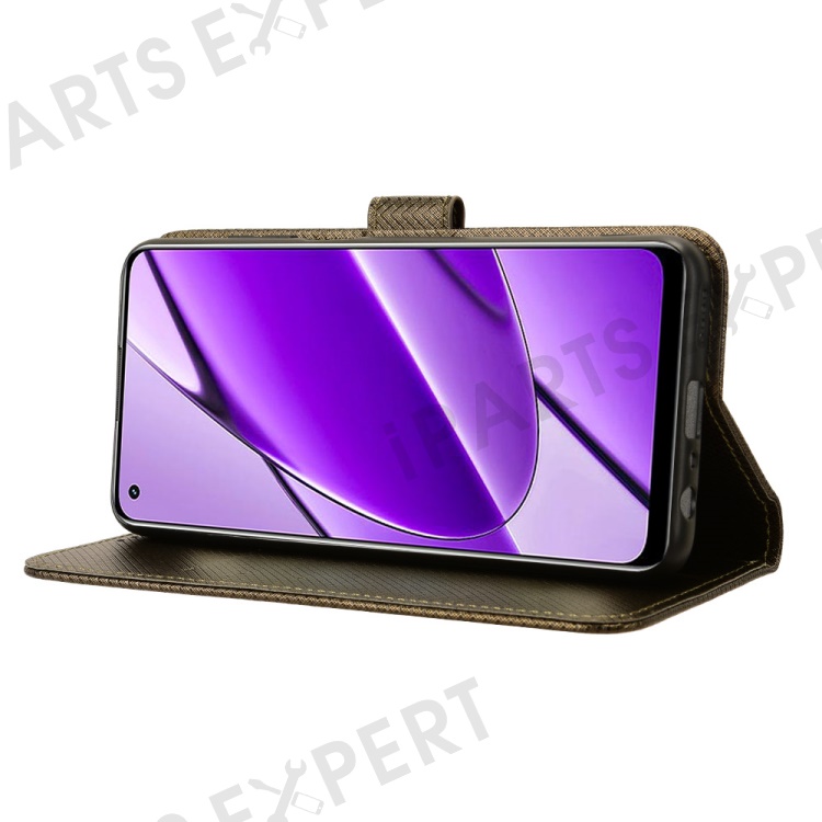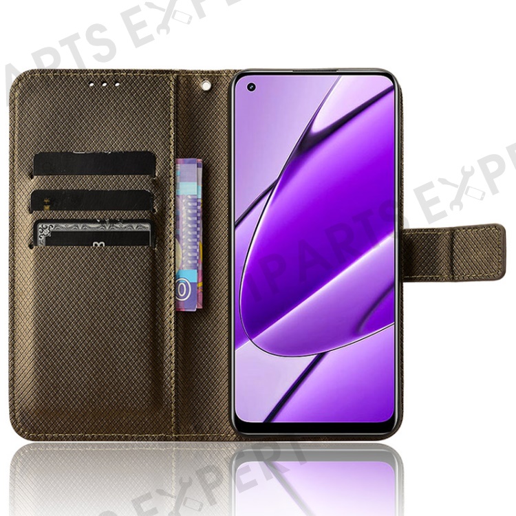 For Realme 11 4G (159.9x73.3x7.95mm) Phone Case PU Leather Wallet Flip Folio Cover - Brown