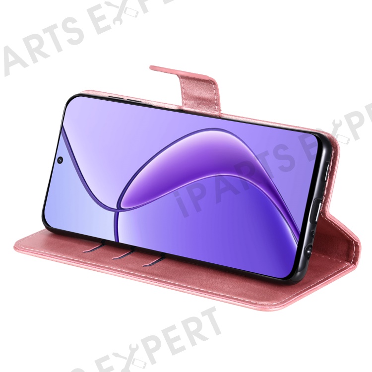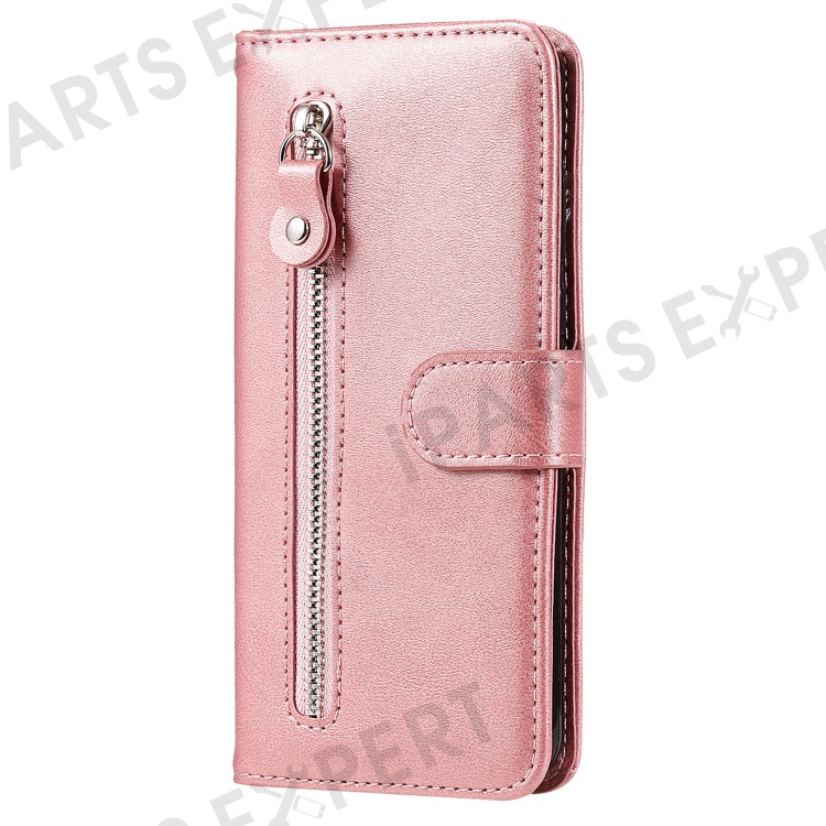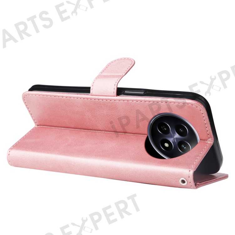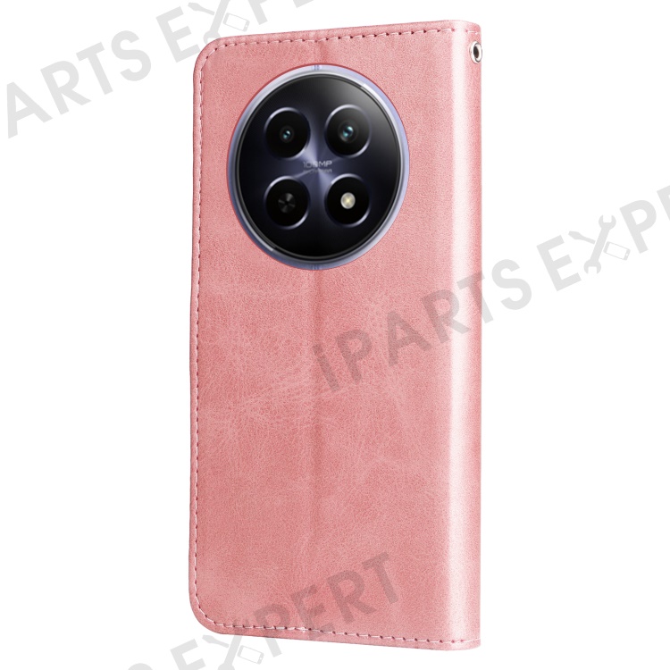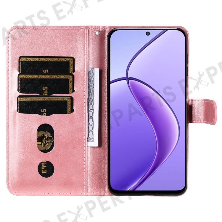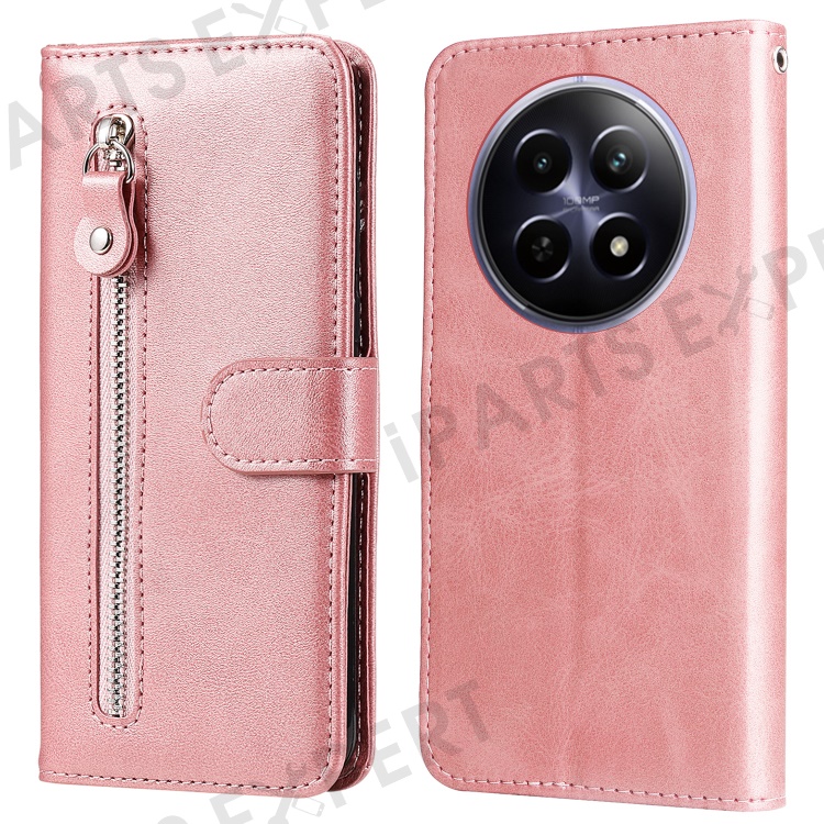 For Realme 12 5G Case Calf Texture Leather Wallet Phone Cover with Zipper Pocket - Pink