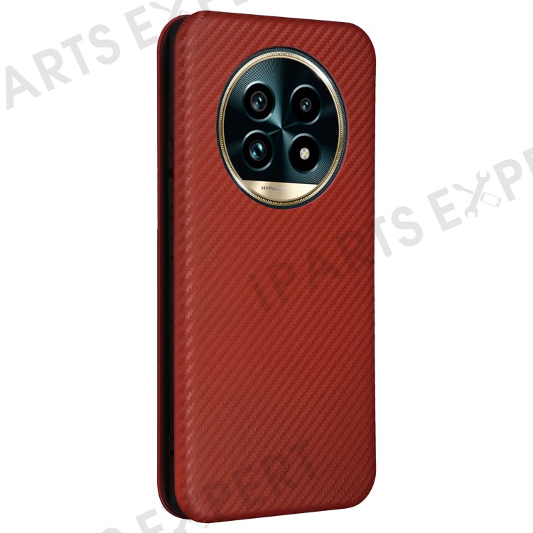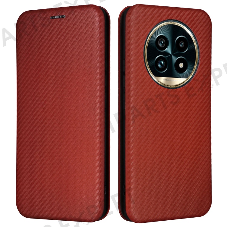 For Realme 13 Pro 5G (Global) / 13 Pro+ 5G (Global) Case Carbon Fiber Texture Drop-Proof PU Leather Phone Cover - Brown