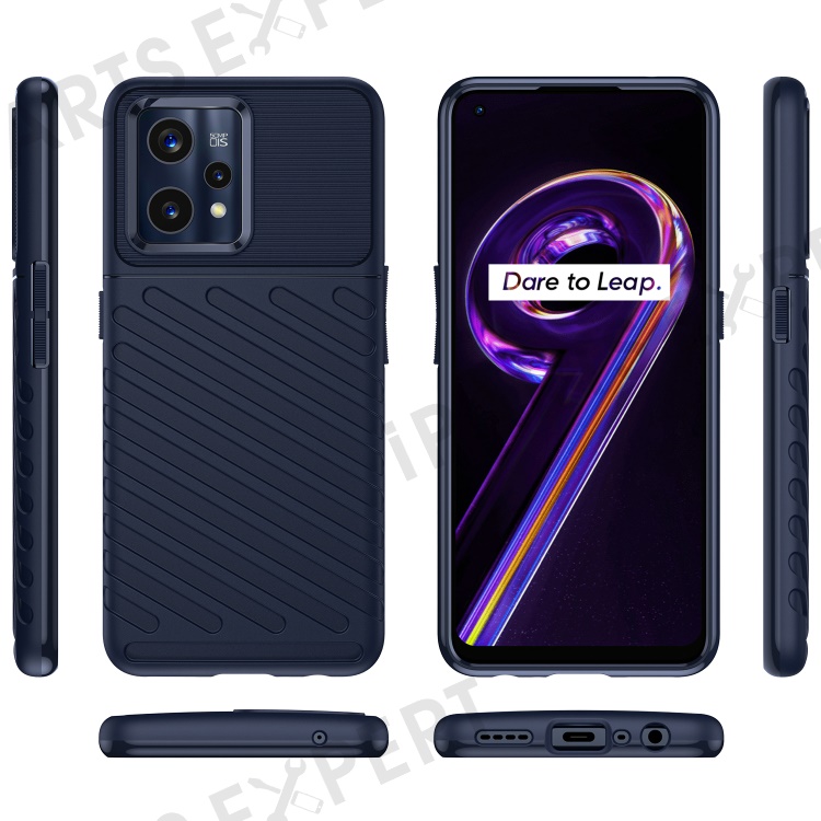 For Realme 9 Pro+ Thunder Series Thickened TPU Twill Texture Phone Case Drop-resistant Protective Cover - Blue