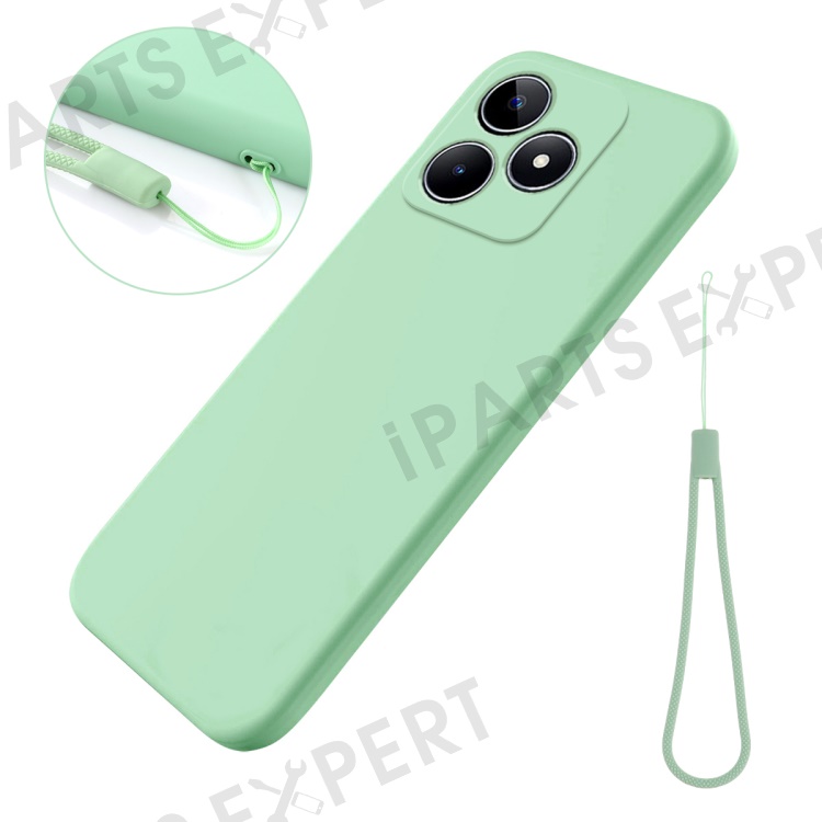 For Realme C53 (India) / C51 Shockproof Phone Case Soft Lining Liquid Silicone Cell Phone Cover with Strap - Green