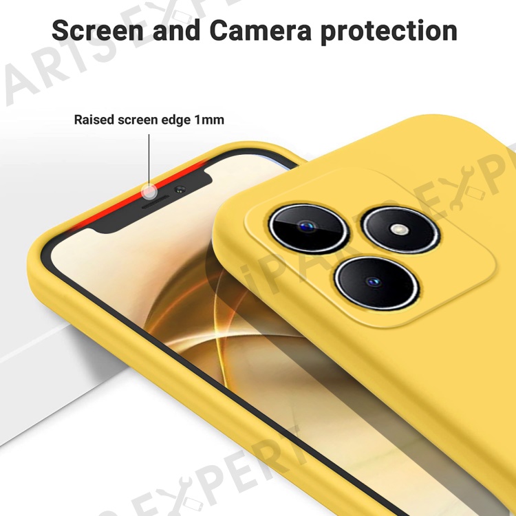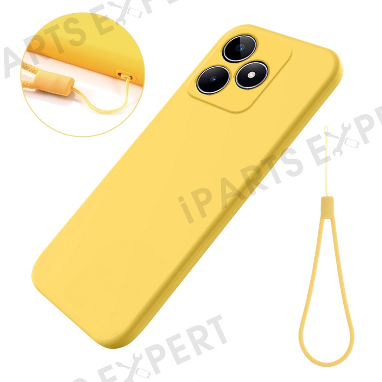 For Realme C53 (India) / C51 Shockproof Phone Case Soft Lining Liquid Silicone Cell Phone Cover with Strap - Yellow