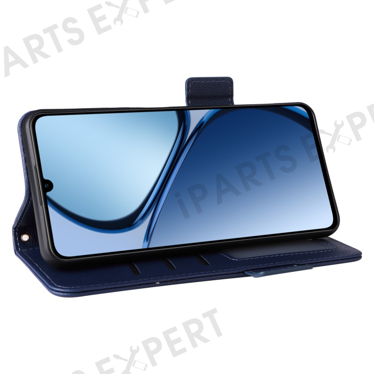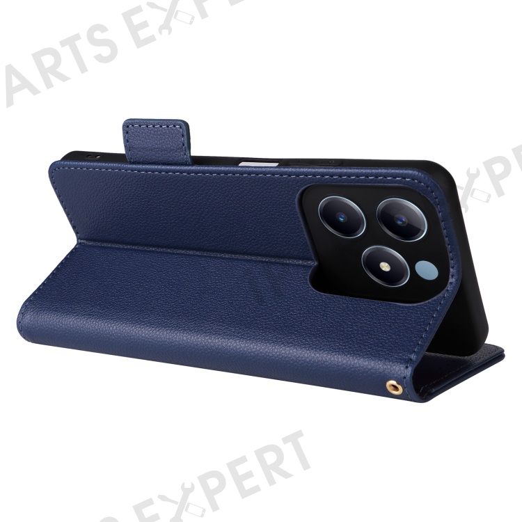 For Realme Note 60x 4G / C63 4G / C61 4G / Narzo N63 4G Case with Wrist Strap Litchi Texture PU Leather Wallet Phone Cover - Dark Blue