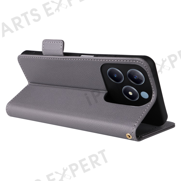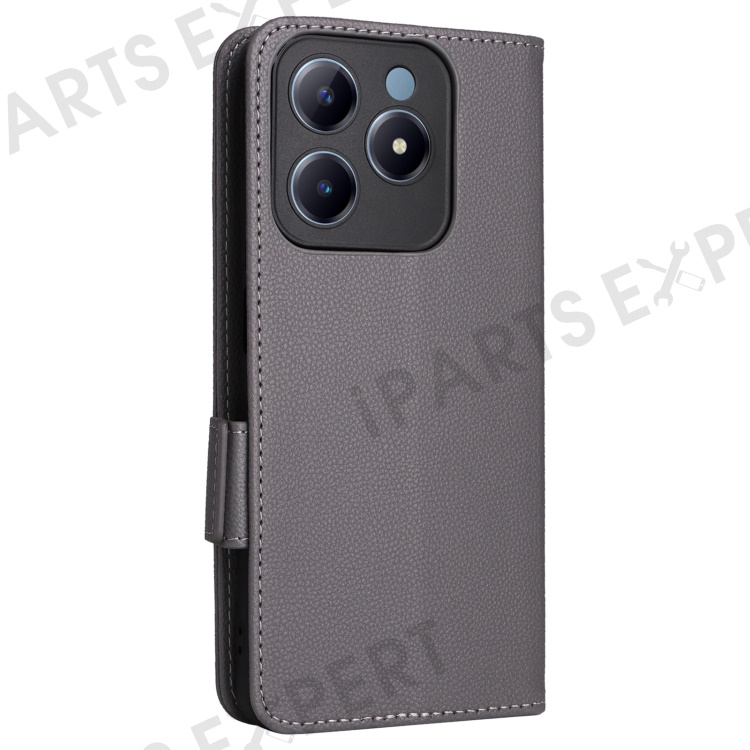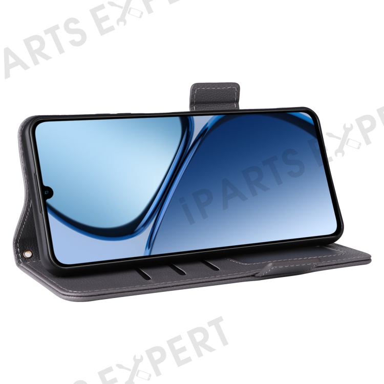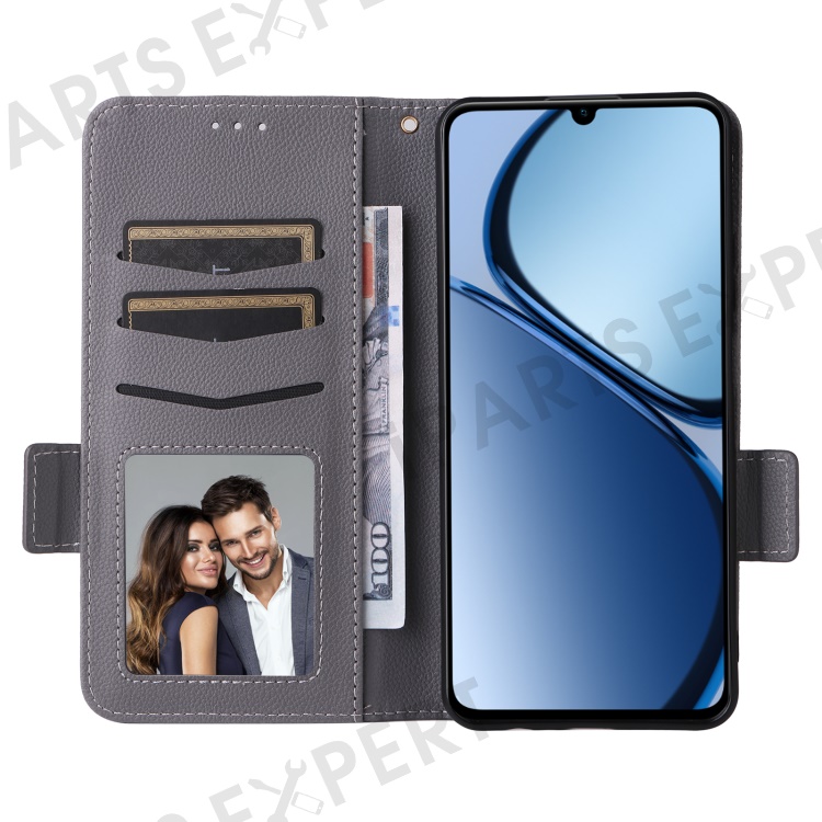 For Realme Note 60x 4G / C63 4G / C61 4G / Narzo N63 4G Case with Wrist Strap Litchi Texture PU Leather Wallet Phone Cover - Grey