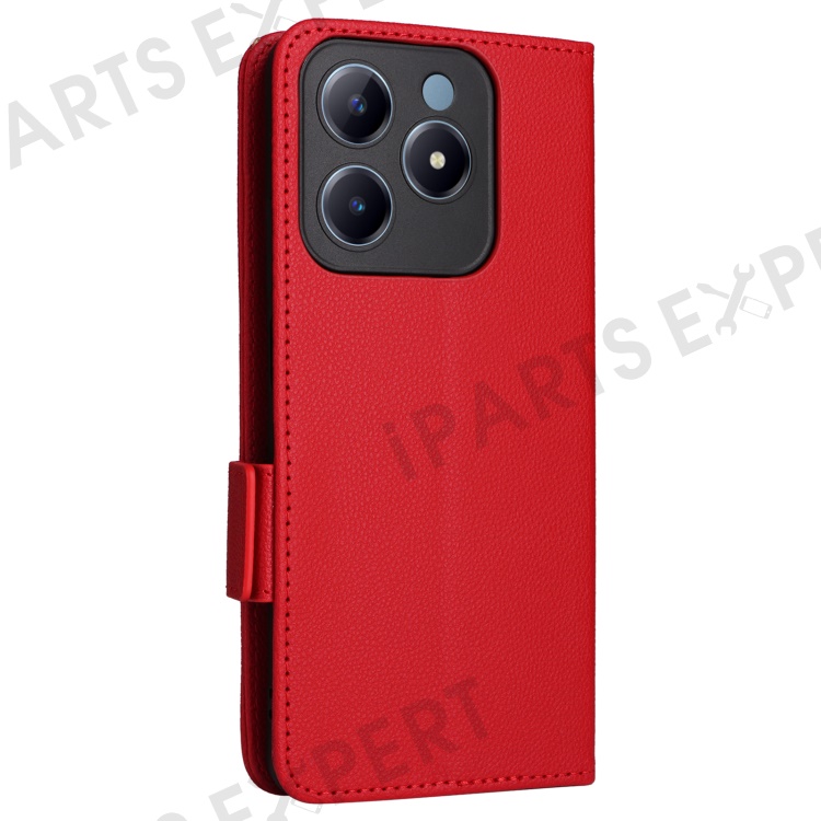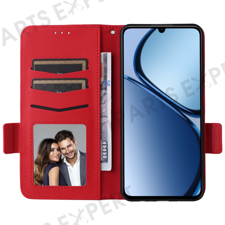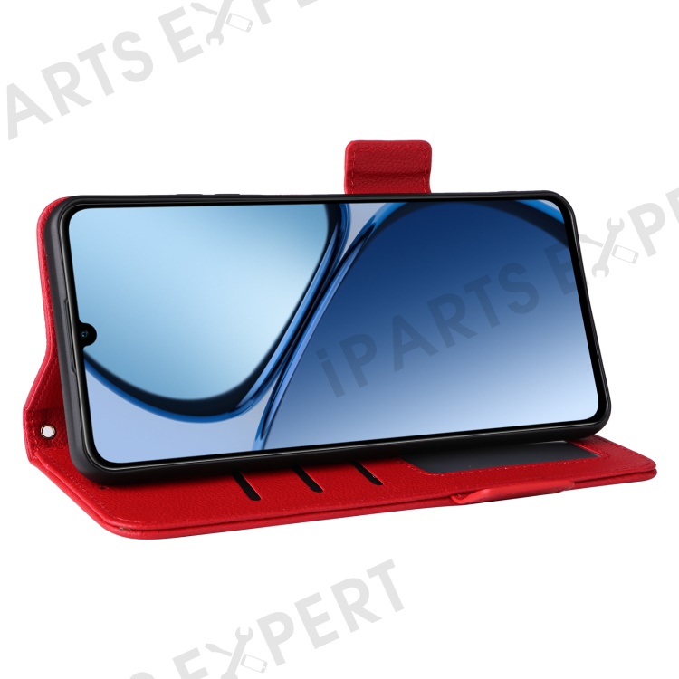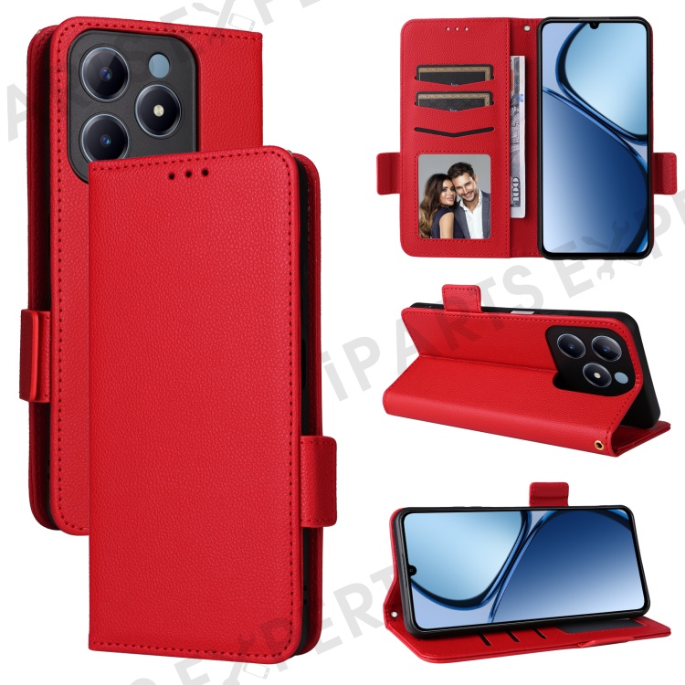 For Realme Note 60x 4G / C63 4G / C61 4G / Narzo N63 4G Case with Wrist Strap Litchi Texture PU Leather Wallet Phone Cover - Red